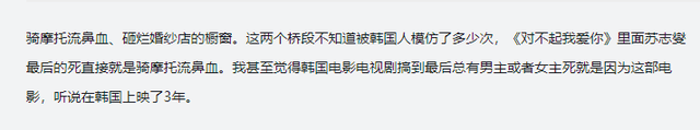 在《对不起我爱你》里,苏志燮便是骑着重机载着林秀晶,边流鼻血边飙车,这一幕完全复刻了《天若有情》的情节。