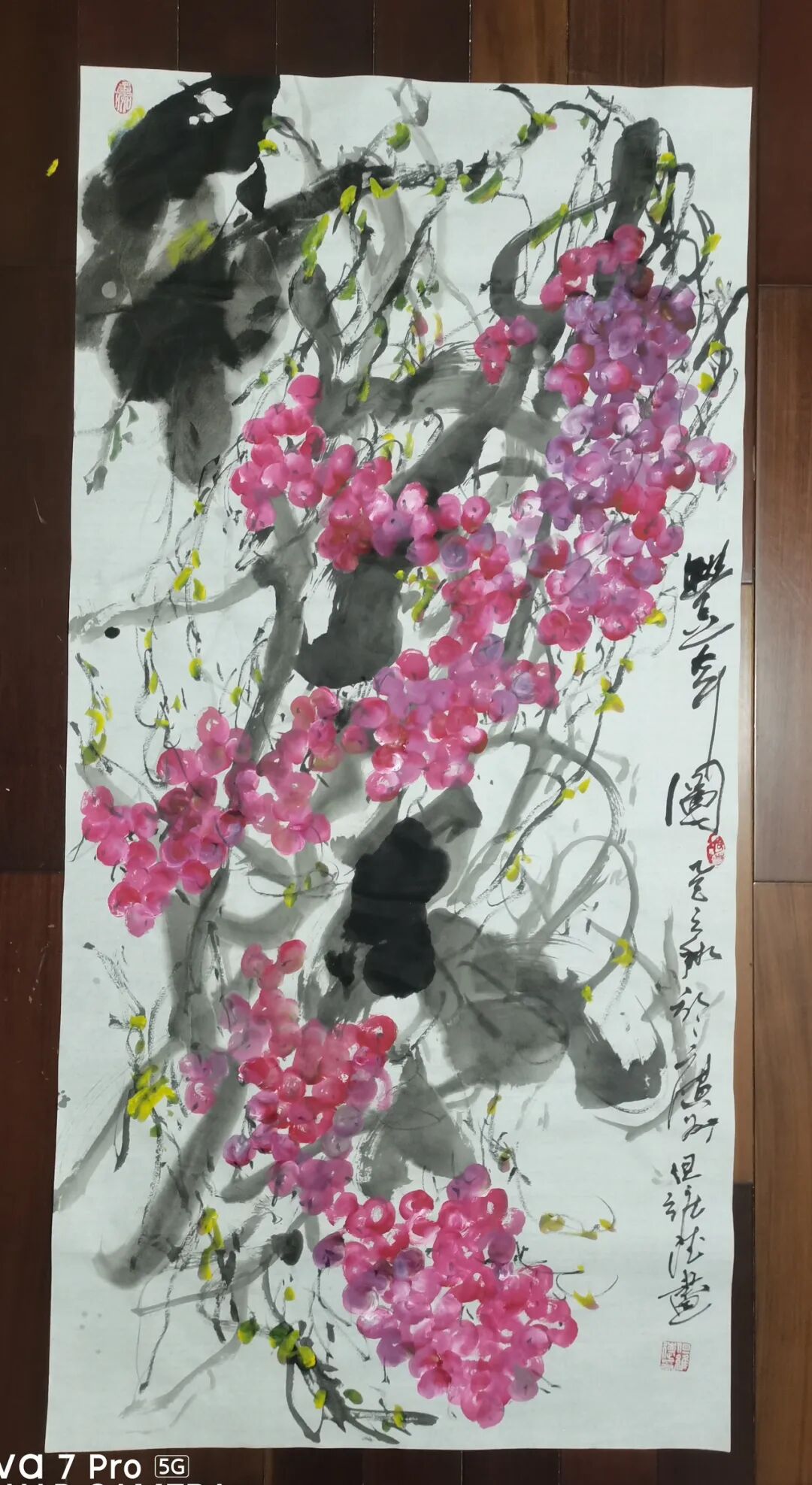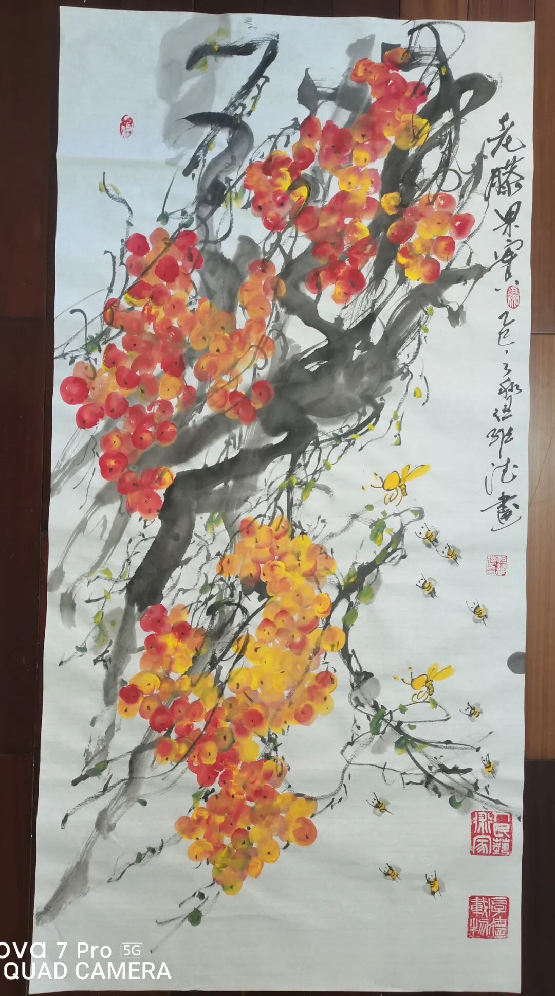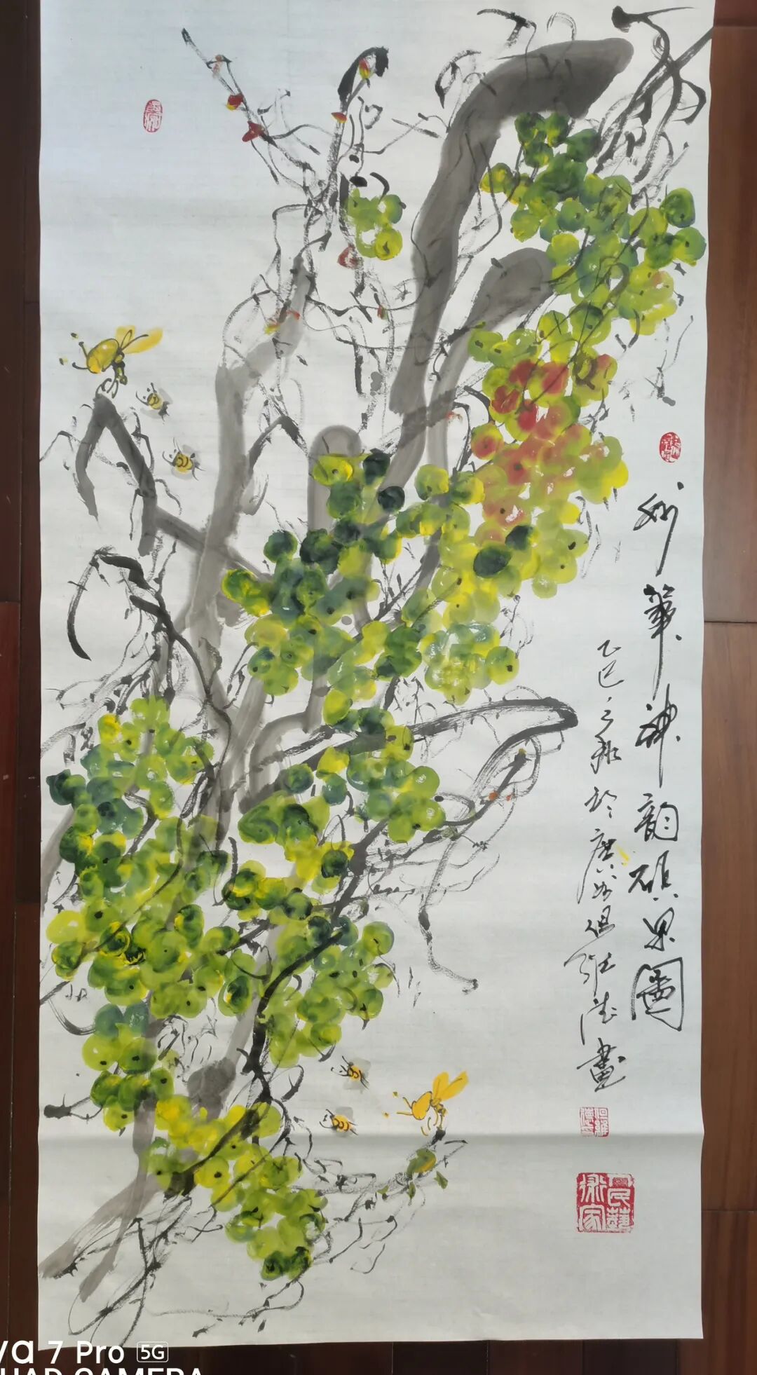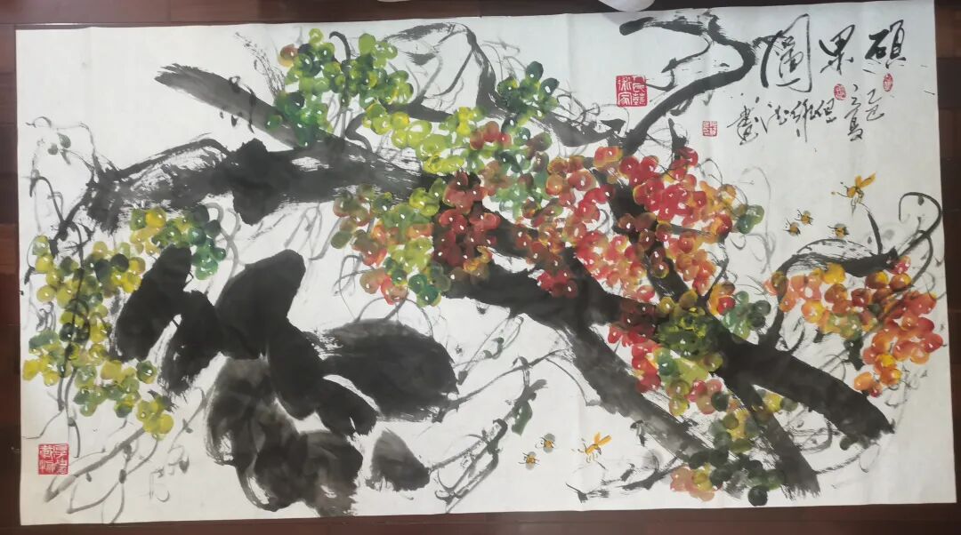 而但老师的书法作品,更是令人拍案叫绝。每一笔一划,都力透纸背,彰显出老师深厚的书法造诣。他的字体,既承袭古风,又独具个性,既古朴凝重,又灵动洒脱。在老师的笔下,每一个字都仿佛被赋予了生命,它们或跳跃、或沉静,共同演绎着一场视觉与心灵的盛宴。此外,但维德老师的果木画作也同样令人赞叹。他笔下绘出的葡萄栩栩如生,仿佛能够闻到果香,感受到生命的脉动。但老师在描绘这些果木时,不仅注重形态的逼真,更注重神韵的传达,使得每一幅作品都充满了生机与活力。但维德老师的书画作品,是诗、书、画三者的完美融合,它们不仅具有极高的艺术价值,更蕴含着丰富的文化内涵和人文情怀。这些作品,如同一扇扇窗户,让我们得以窥见老师内心深处的世界,感受到中国传统艺术的魅力与力量。