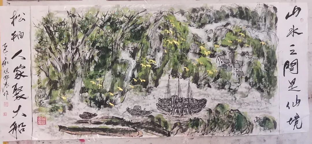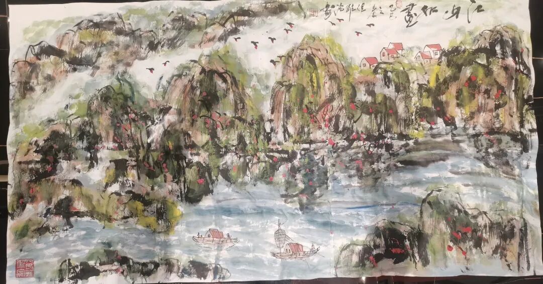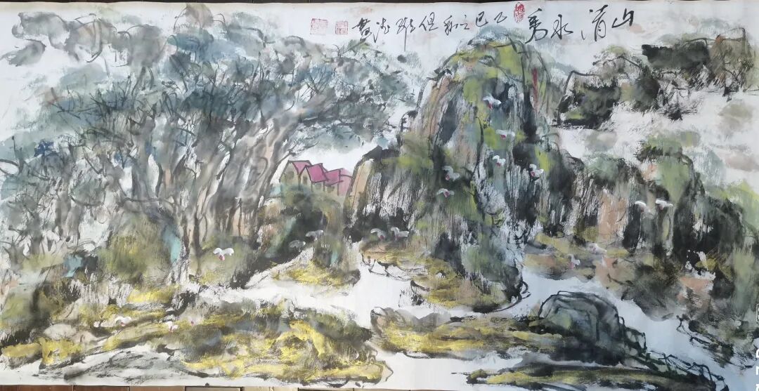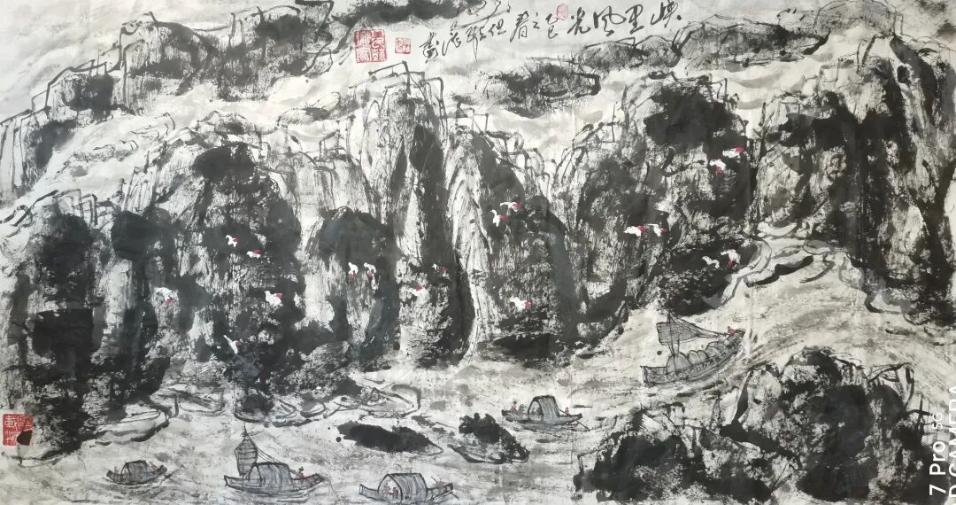 但维德老师作为国内首屈一指的诗人、作家、书法家、画家,国家一级美术师,其书画作品却散发着浓厚的文人画气息,画中蕴含诗意,诗中饱含画境,真正实现了诗、书、画三者的完美融合。细观但维德老师的书画作品,堪称中国传统艺术的璀璨明珠,它们不仅展示了但老师卓越的艺术才华,更流露出一种深沉的文化底蕴和人文精神。每一幅山水画,都仿佛是但老师心灵深处的写照,那峰峦叠嶂、溪流潺潺之间,蕴藏着但老师对自然的崇敬与挚爱,以及对生命哲理的深刻领悟。在这些山水画中,但维德老师巧妙地运用墨色与线条,描绘出一幅幅生动且层次分明的画面。远山近水,相得益彰,既有磅礴大气的格局,又不失细腻柔美的情致。