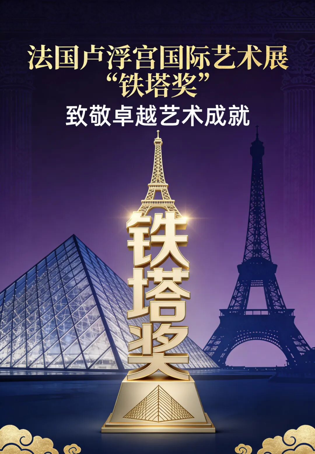 在连接卢浮宫的永恒殿堂与埃菲尔铁塔的现代精神的交汇处,“铁塔奖”致力于发现那些既植根于深厚文明,又能以锐利创新指向未来的艺术创造。我们荣幸地宣布,但维德先生荣膺本届大奖。其创作以独特的艺术语言,在历史与当代、沉思与宣言之间,建立起了一座坚实而充满启示的桥梁。这不仅是技艺的加冕,更是一场与时代精神的深刻共鸣。谨以此誉,致敬所有敢于在人类文明的穹顶下,构筑属于自己时代尖顶的孤勇者与先见者。