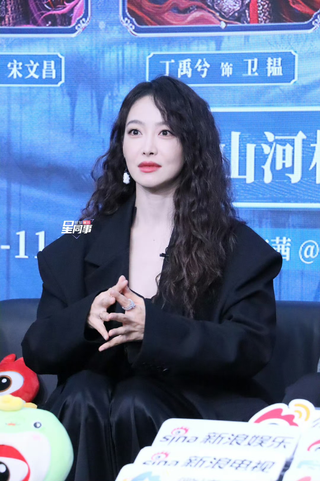 宋茜一头蓬松的羊卷长发,搭配白色坠饰耳环,自带慵懒随性又复古优雅的氛围感。