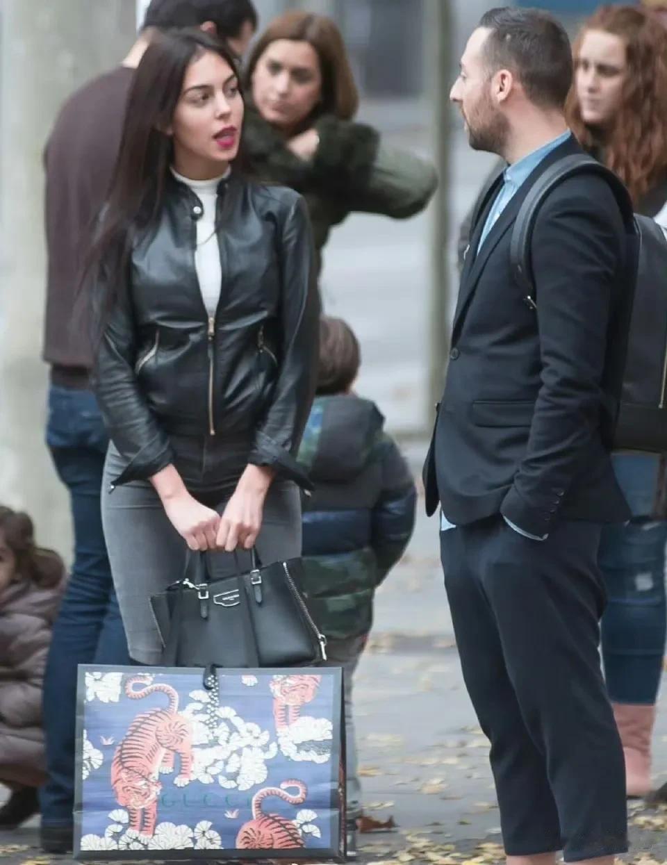 乔治娜还未被聚光灯笼罩时,与异性朋友站在街边轻松聊天。