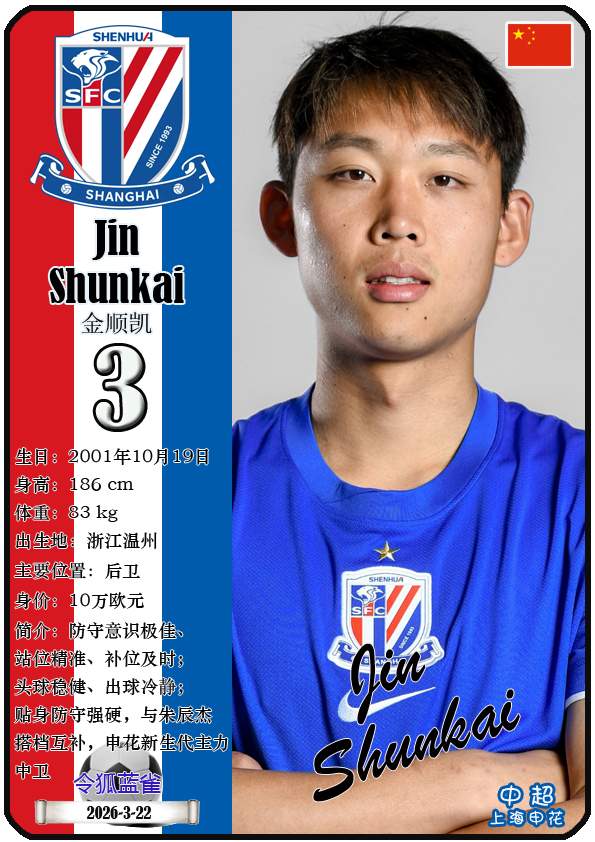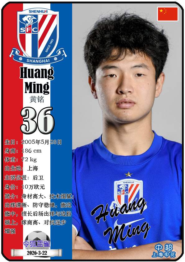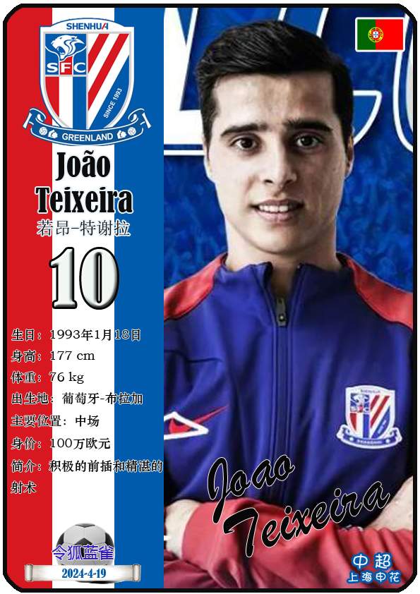 截至2026年3月22日,中超上海申花足球俱乐部主教练是莱昂尼德·斯卢茨基,队内拥有球员若昂-特谢拉、拉斐尔-拉唐、萨乌洛-米内罗等。本期以球星卡的形式展示目前中超上海申花足球俱乐部的34名球员(按球衣号码排序):