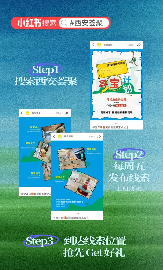 当然隐藏关卡也不能忘!别错过荟聚的角角落落,各种宝藏已经随机隐藏到了你会经过的地方,谁第一个找到就归谁!每周五,西安荟聚小红书和公众号将在线上预告宝藏线索,别忘了关注哦~
