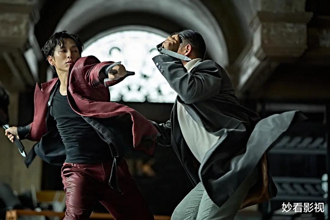 导演李泰成没走花哨路线,用很多长镜头来展现打斗的连贯性。韩律的“螳螂刀”很有辨识度,弯曲的刀刃像螳螂的前肢,挥砍时带着刁钻的角度,尤其是在狭窄的走廊里优势更明显,把“螳螂”这个代号的灵动和致命感都拍出来了。