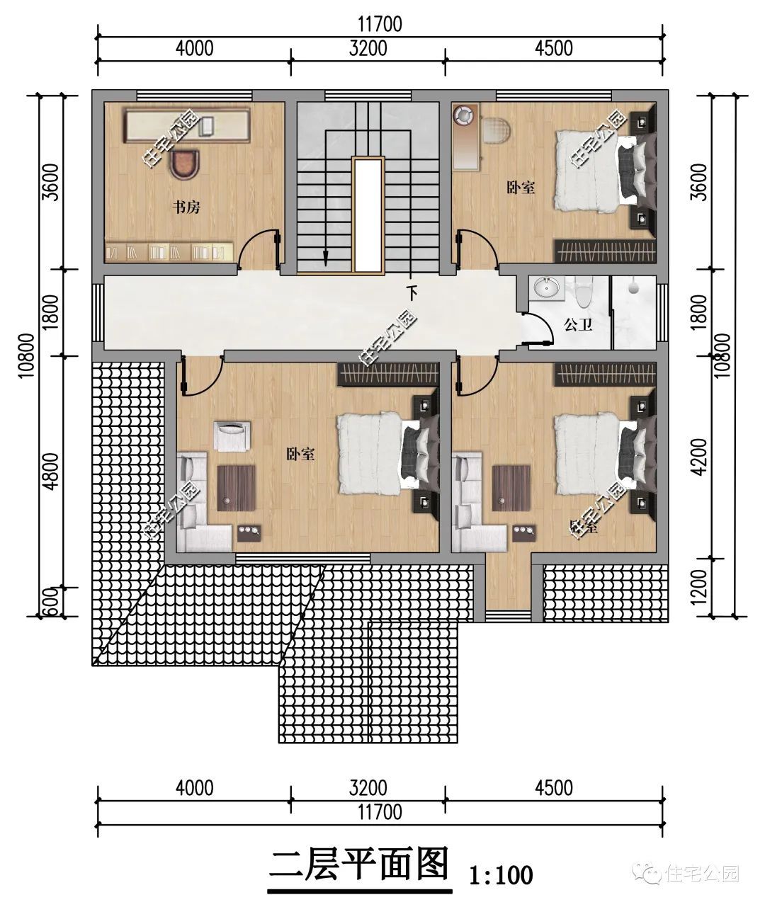 二层主要是家人的生活居住区域,3间卧室的配置也完全够用。