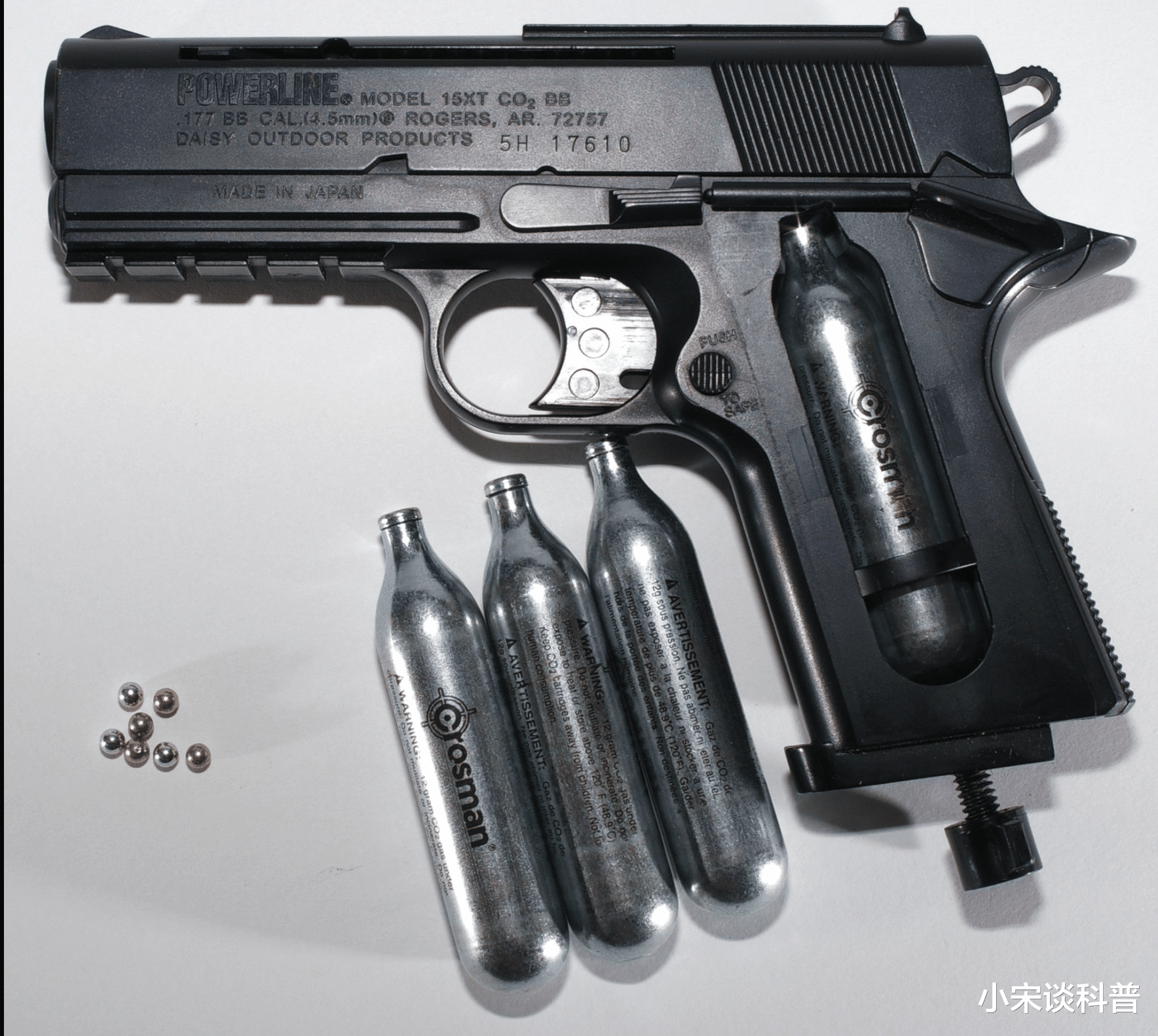 软气枪使用压缩空气、二氧化碳或其他气体作为膨胀物质,通过压缩气体来增加其密度和气压。在扣动扳机之前,压缩气体被储存在密闭容器中。