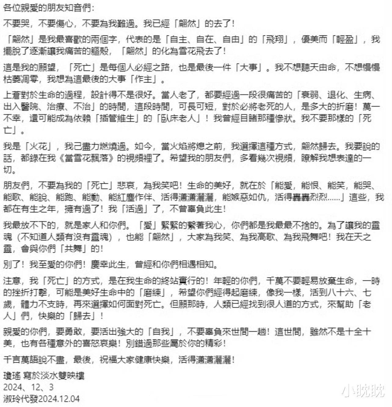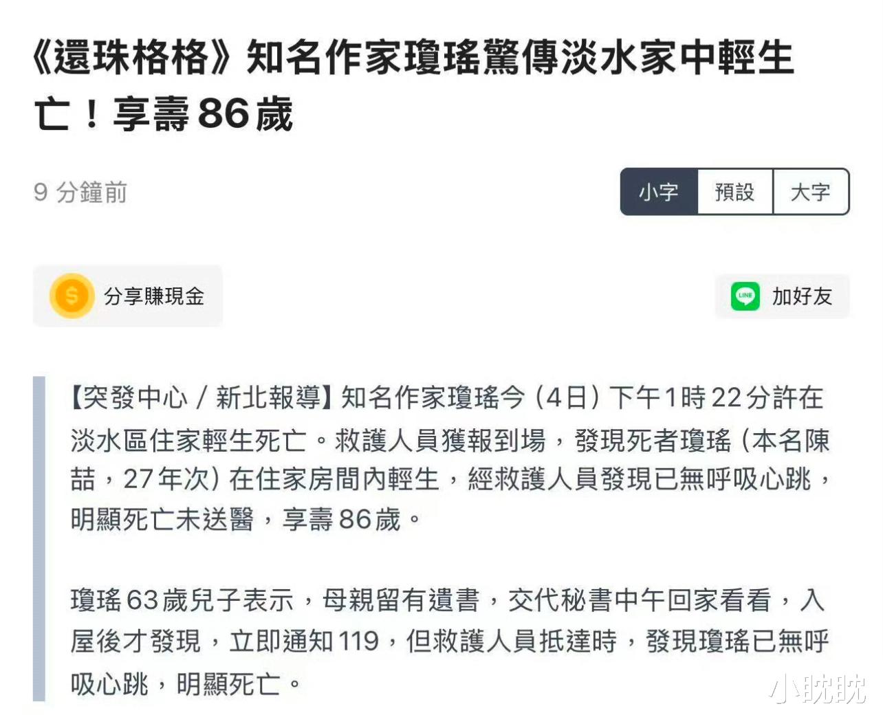 【琼瑶的离世】琼瑶的离世无疑给文坛带来了巨大的震动。她的一生充满了传奇色彩,她的作品也成为了文坛的瑰宝。然而,她的离世也让人们不禁思考:一个才华横溢的作家,为何会选择轻生呢?