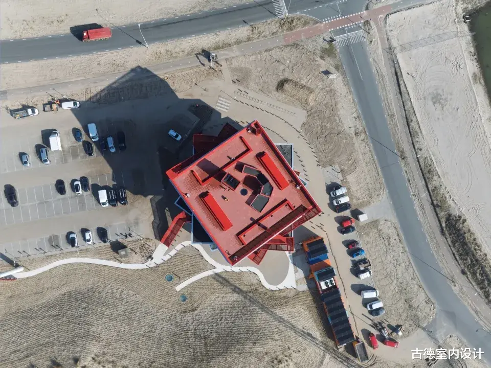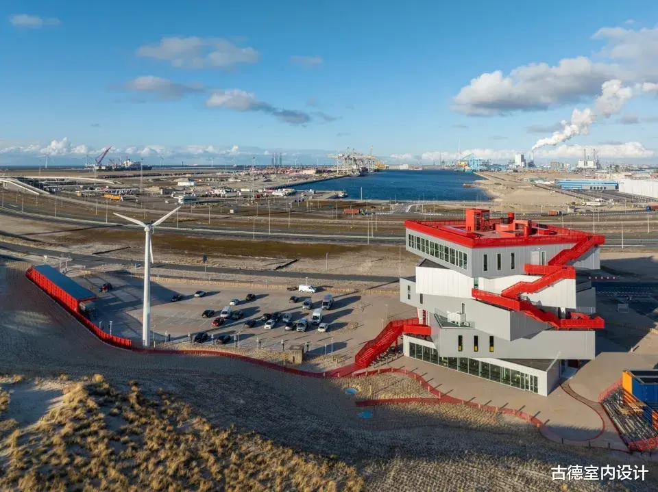 几个世纪以来,鹿特丹市与其港口共同成长,形成了一种共生关系。在21世纪,鹿特丹港正经历其历史上最重要的变革之一,向可持续、低能耗运营模式转型。如何让公众体验这一变革,并理解港口的复杂性?今天正式开放的 Portlantis 便是答案。这座由MVRDV设计的游客及展览中心位于港口最西端,由五个相互旋转叠加的展览空间构成。建筑从周围环境中脱颖而出,其醒目的深红色公共步道从沙丘一直延伸至屋顶,同时在各个方向提供壮观的景观,包括北海、海岸线和港口。