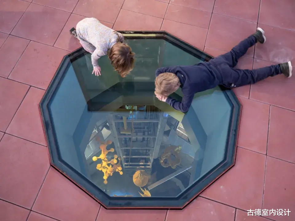 © Ossip van Duivenbode建筑中央设有22米高的中庭,本身便是一个展览空间。中庭中央悬挂着一件动态雕塑,而底层则展示了一座鹿特丹港的模型。这一戏剧性的空间通过镜面天花板增强了视觉高度,而底层入口的旋转门则隐藏了展览内容,使参观者在进入建筑核心空间后才得以揭示。