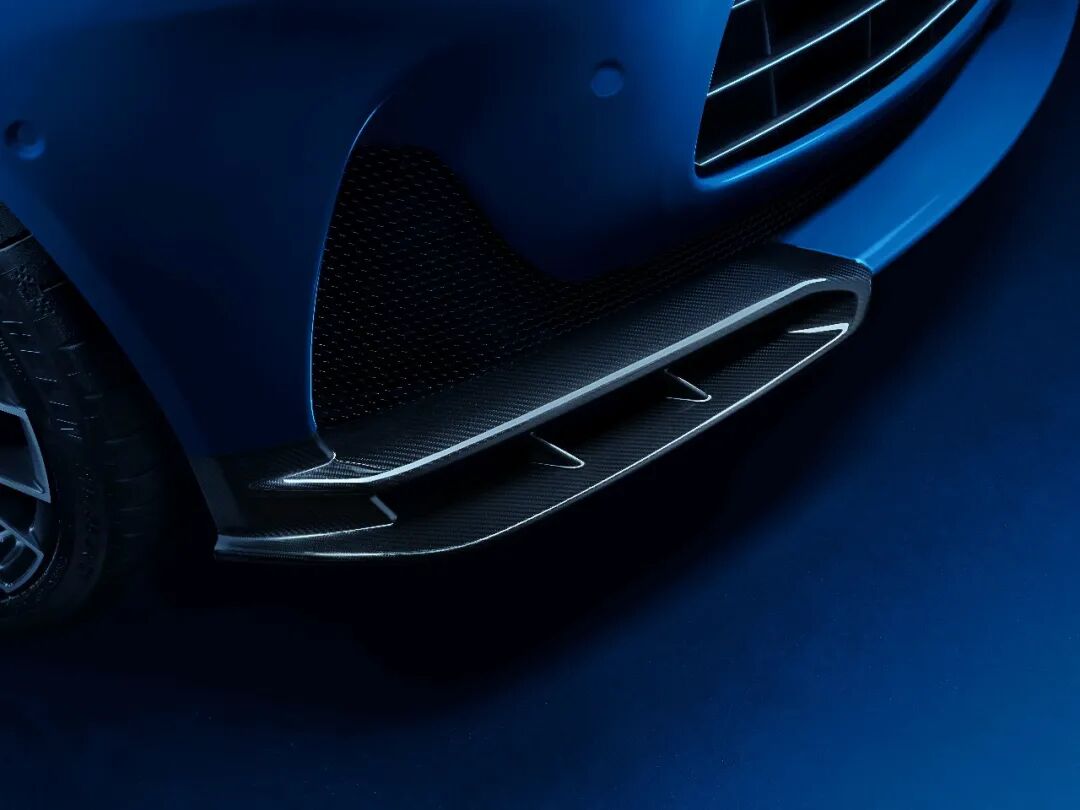 发动机盖上新增了百叶窗式开口,提供亮黑色可选,也可加价选配碳纤维材质。