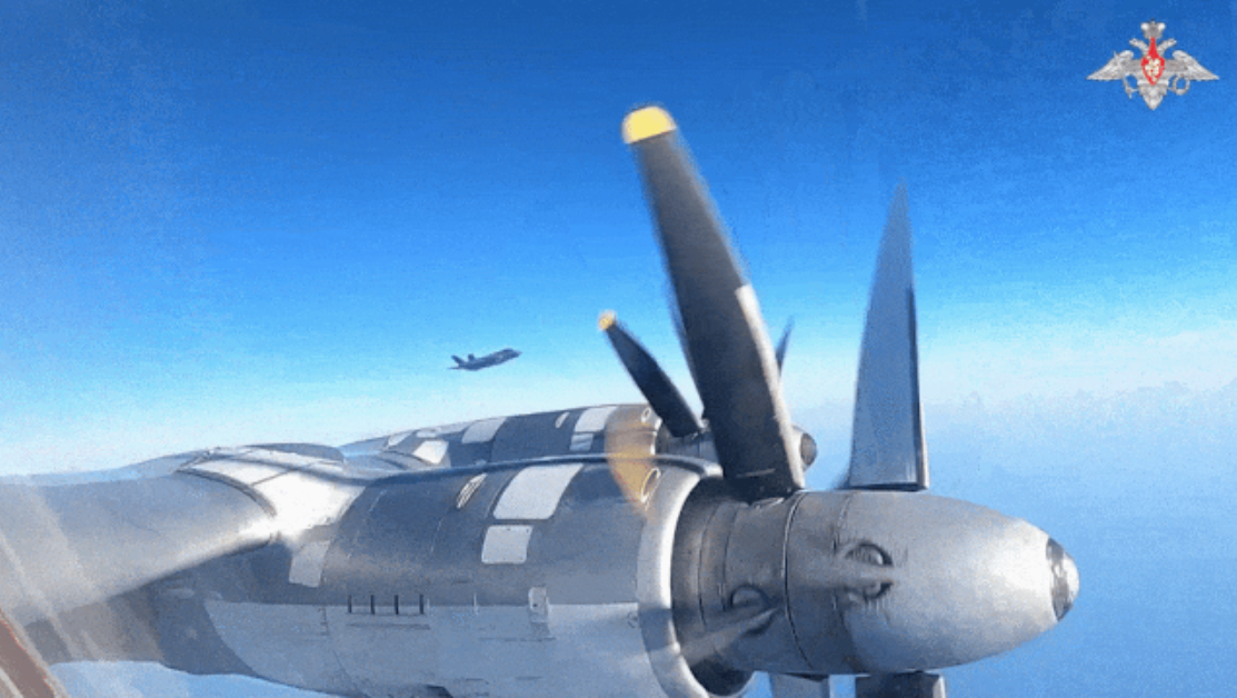 从俄罗斯军方12月9日晚间发布的视频的截图来看,有一架机身细长的军机,左侧机翼上两台发动机上,旋转着巨大的四叶螺旋桨,在资深军迷眼中它就是如假包换的——Tu-95“熊”战略轰炸机。