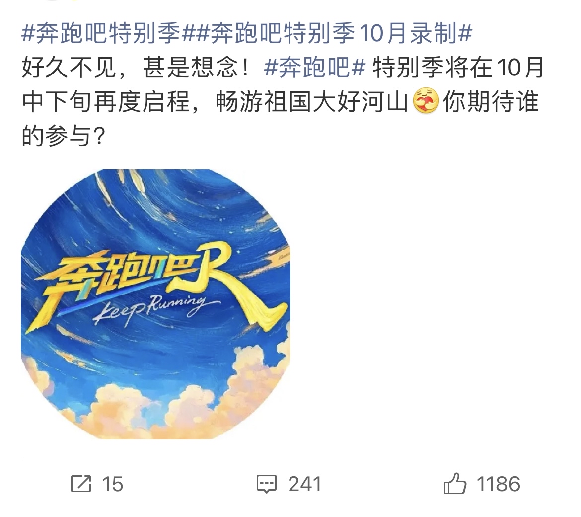 就在今天《奔跑吧》官微亲自发文认证《奔跑吧特别季》即将开启录制,还在线征集网友们喜爱的飞行嘉宾。