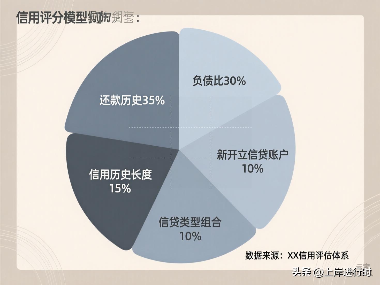 还款历史- 权重约为35%: 这是最具影响力的部分。任何逾期、违约、破产等负面记录都会在这里体现,并对分数造成严重打击。一次严重的逾期,其负面影响远超其他所有方面的努力。