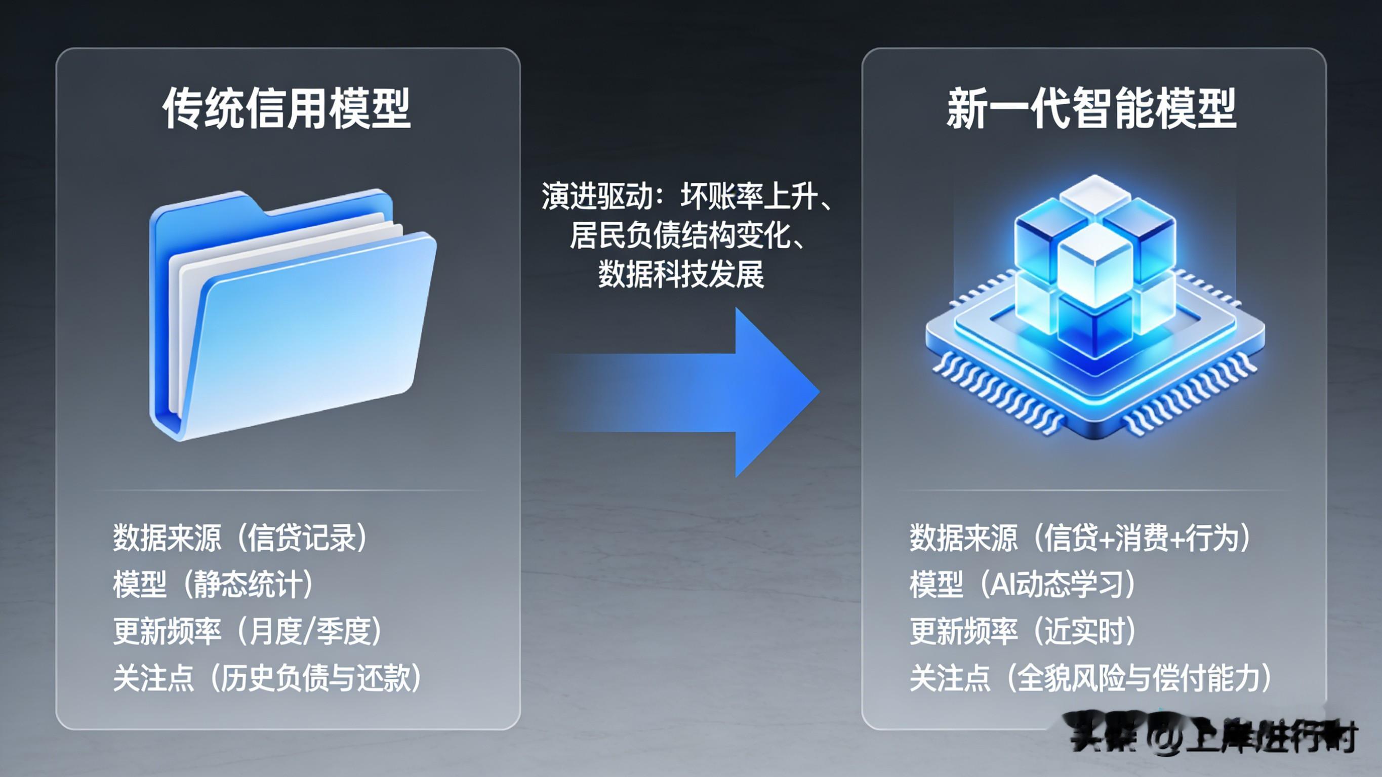 比如,这几年坏账率不断提高,居民负债比持续上升的情况下,算法模型肯定也会有所调整。比如,信用分不再是每月或每季度更新一次。通过大数据和AI技术,模型能够根据用户最新的信用行为(如频繁申请网贷、发生逾期)进行近乎实时的动态调整。还有的AI模型发现,“在凌晨2-4点频繁申请小额网络贷款”这个行为模式,与未来违约率有极高的相关性。