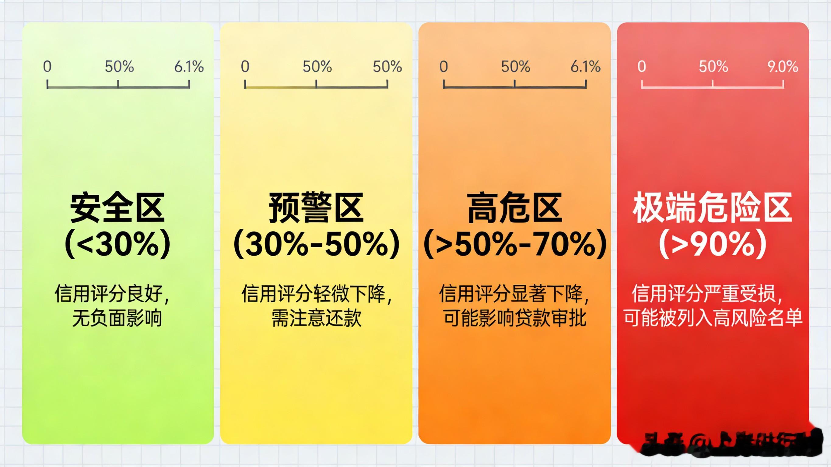 高危区(>50%-70%): 超过50%会被视为一个危险信号,分数会大幅下降。而超过70%则进入了高风险预警状态,这几乎等同于向银行宣告“我非常缺钱” 。