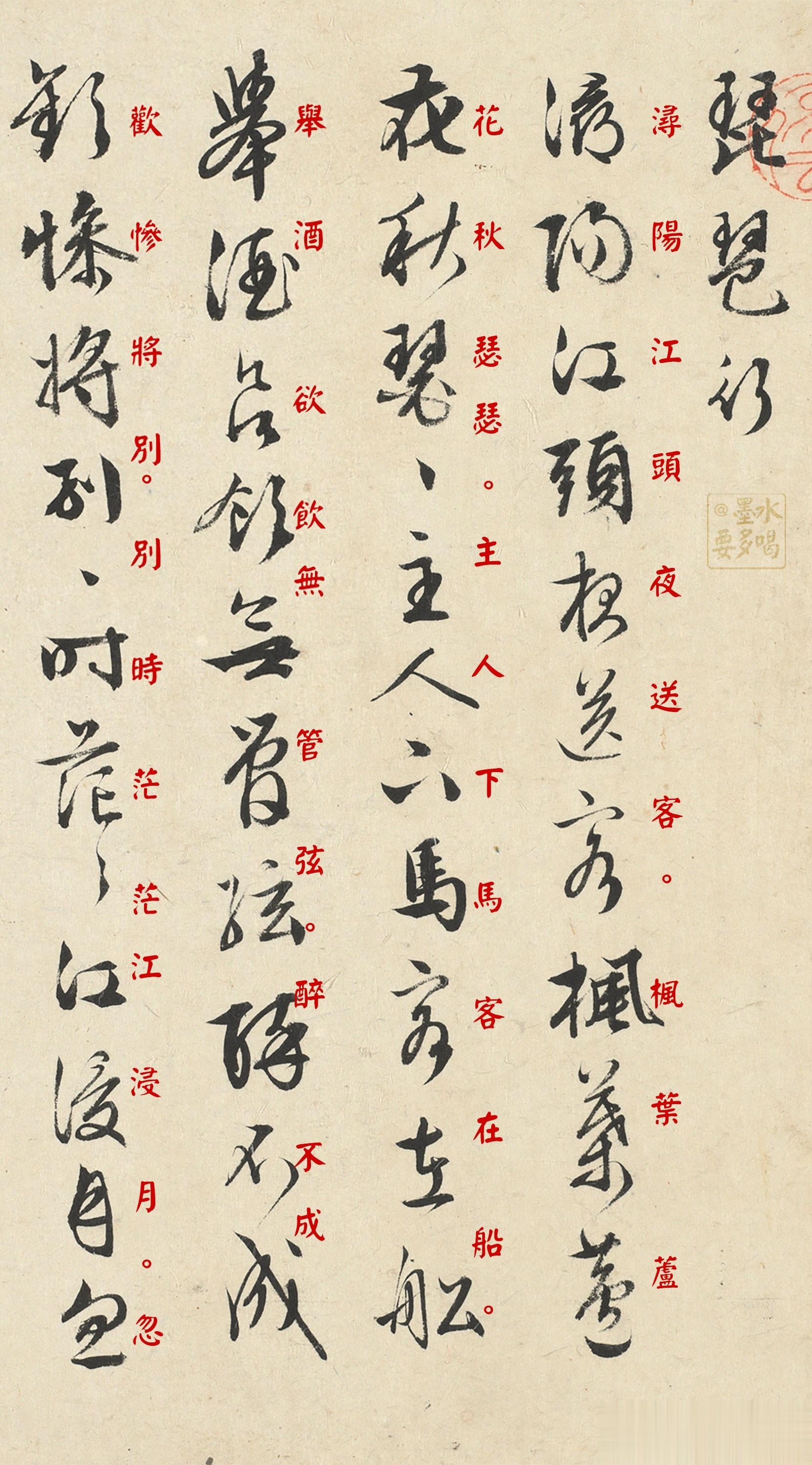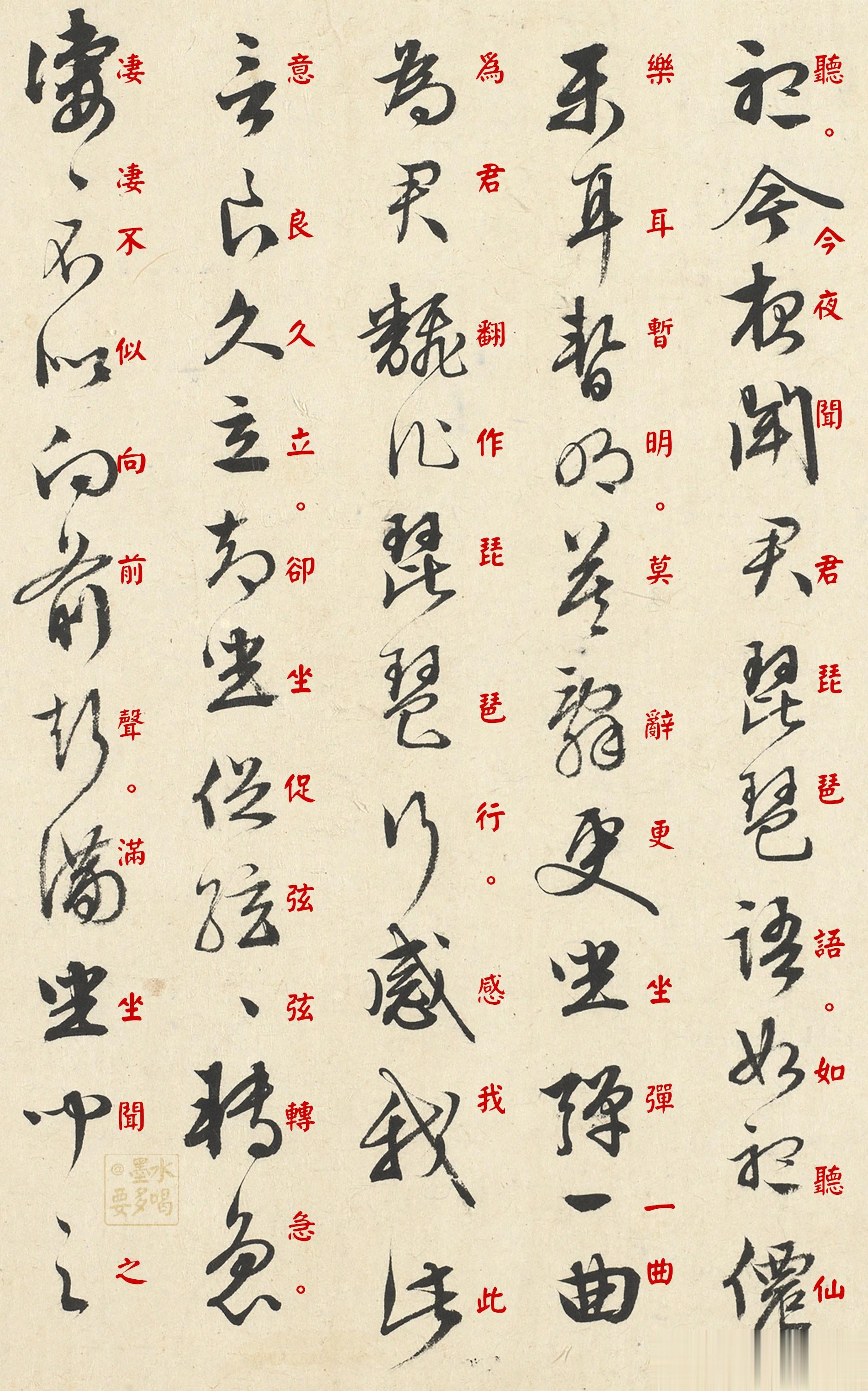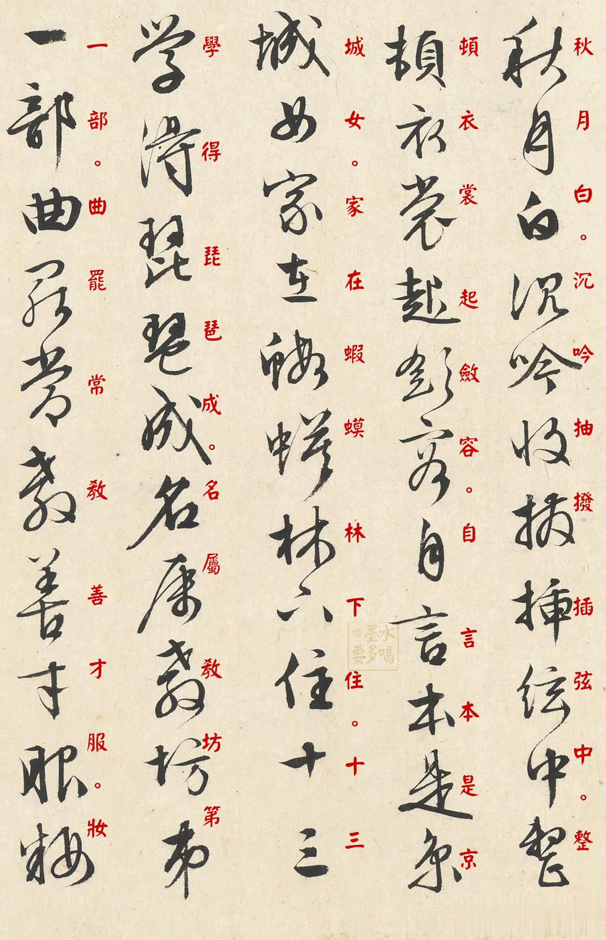 注:上一页中右起第二行到底是“寻声暗问弹者谁”还是“寻起暗问弹者谁”,如果是“声”这写法也是太少见了。