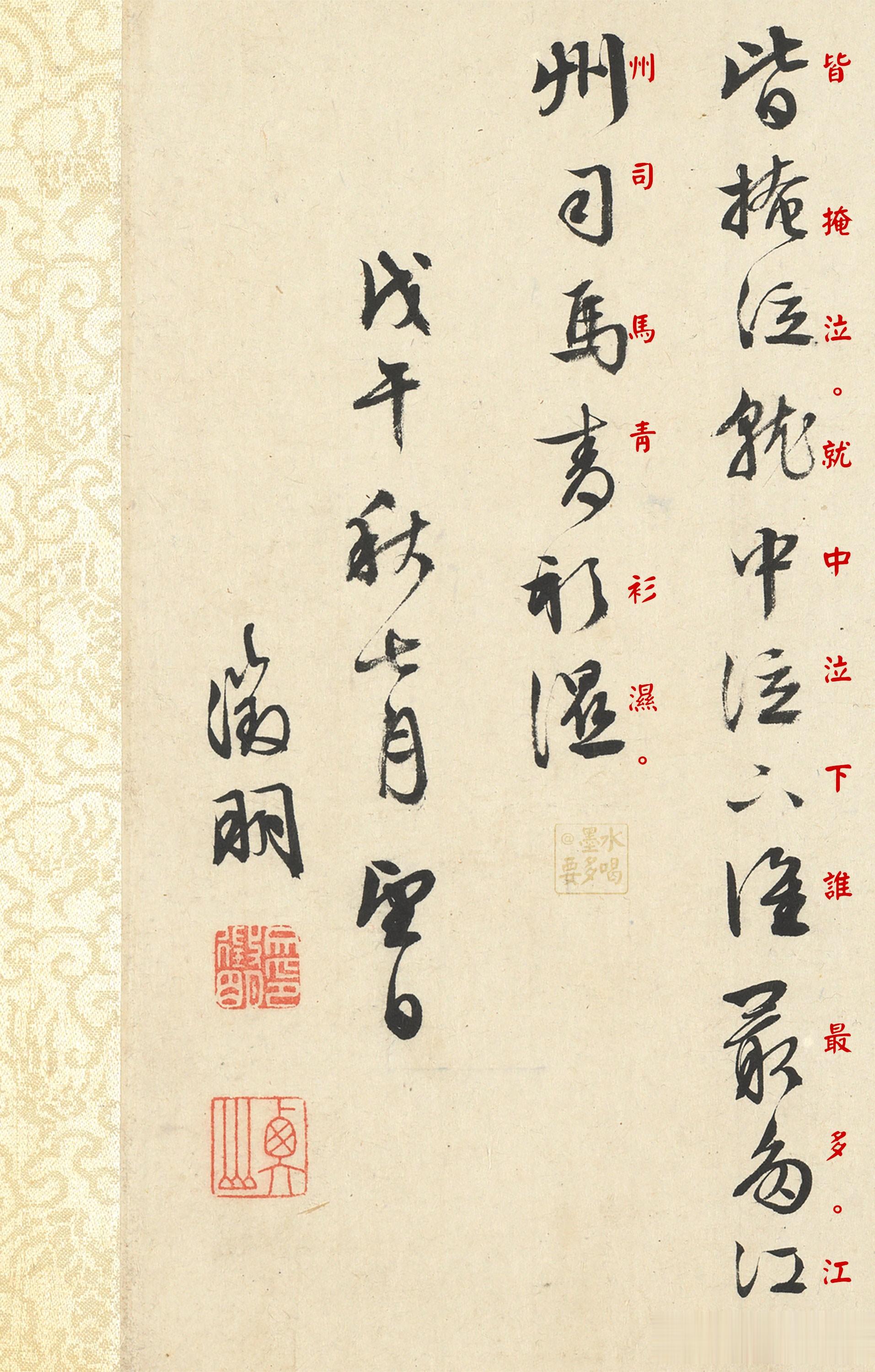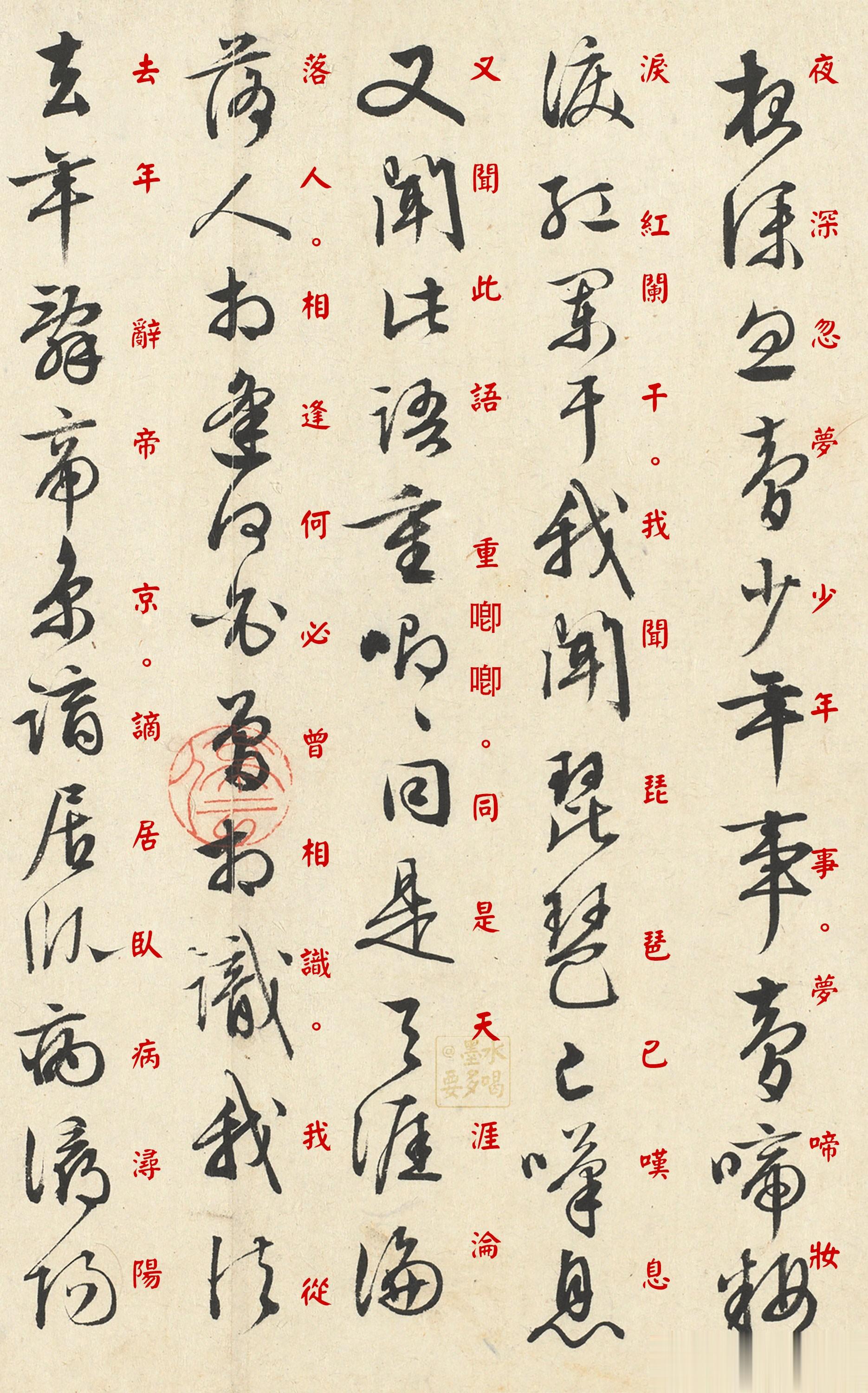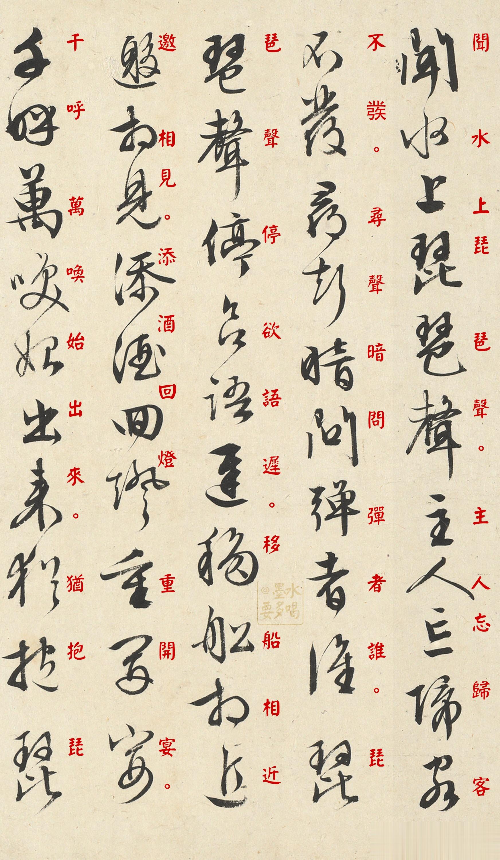 注:上一页中右起第二行到底是“寻声暗问弹者谁”还是“寻起暗问弹者谁”,如果是“声”这写法也是太少见了。