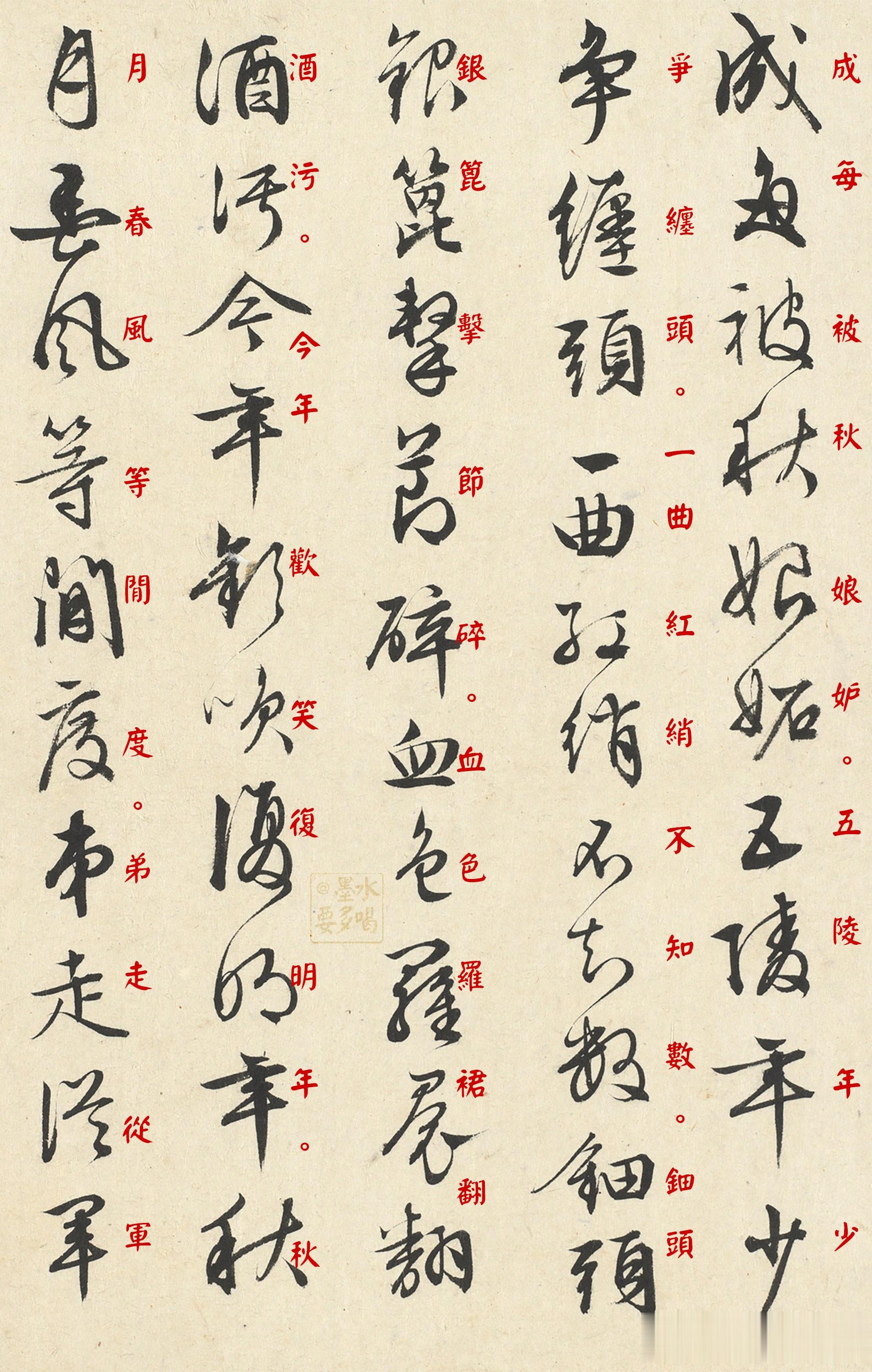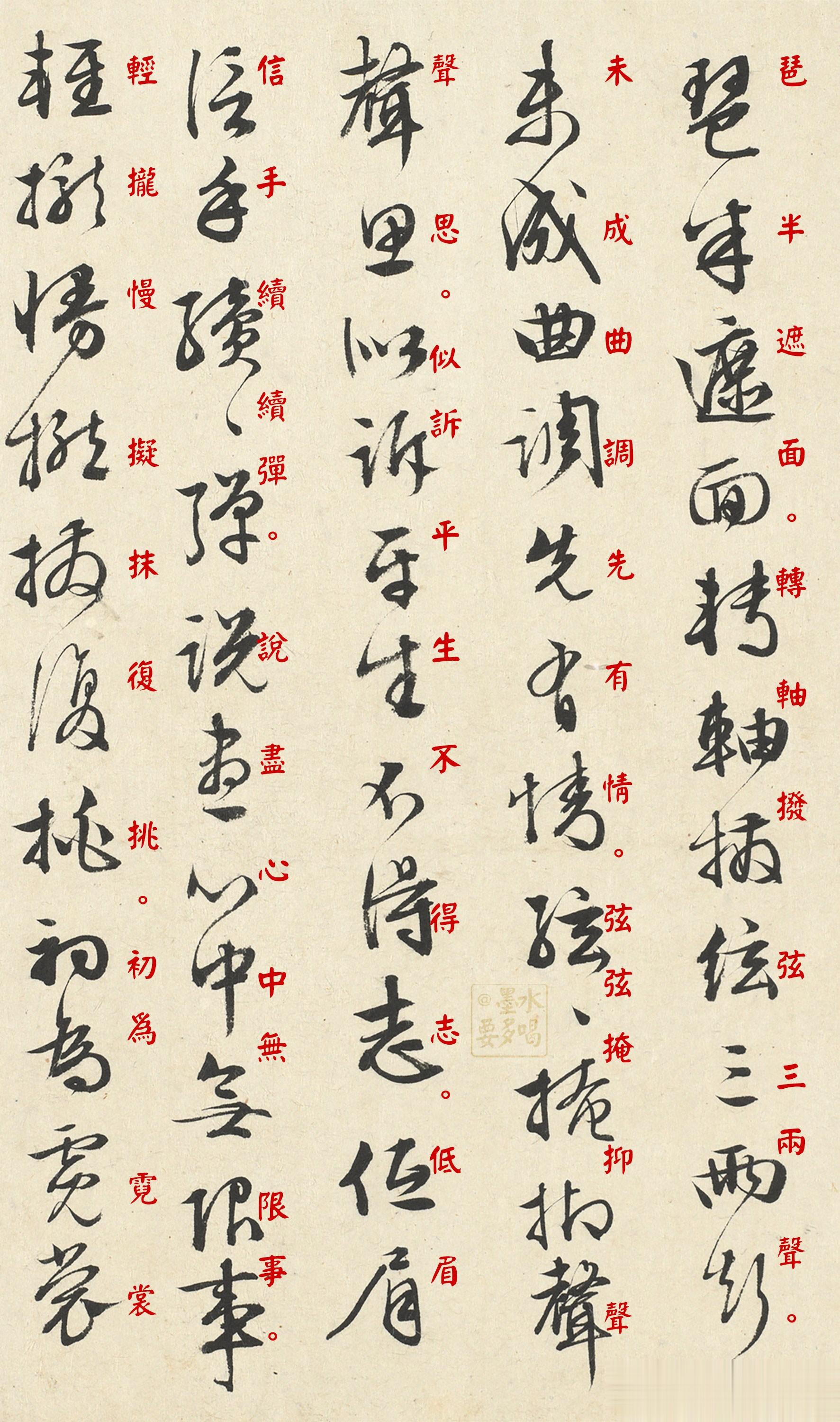 注:上一页右起第一行中“絃”为“弦”的异体字写法,这个字现在很少这么写了。右起第五航,“拢(攏)”和“拟(擬)”的写法比较形似。