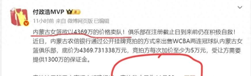 WCBA新赛季马上就要开打了,然而一则消息让大家看到了下个赛季各家俱乐部的情况。内蒙古女篮公开拍卖100%股权。而它的挂牌价是4,369万元。