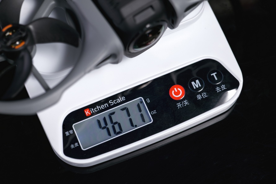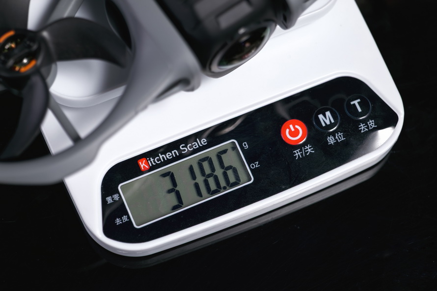 实测Avata 360裸机(不含电池、镜头保护罩)下重量约318g,安装上电池后,重量更是大幅度攀升,达到了467g左右,快一斤了。
