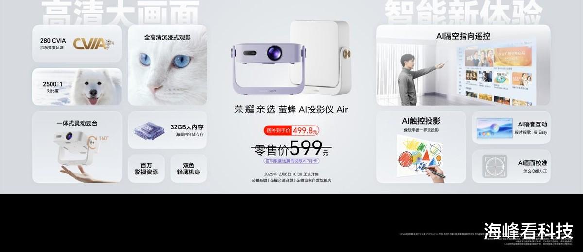 此外,荣耀500系列新品发布会还带来了多款重磅新品。荣耀500系列带来超级标准版和超级Pro版,以2亿人像全能实况、骁龙8系旗舰芯片、8000mAh青海湖大电池超长续航、超美水晶小直屏最强质感,重塑档位标准,为用户带来一步到位的用机体验。荣耀手表X5作为荣耀手表迄今最大屏、最窄黑边、最轻薄的方表,是档位中唯一同时配备游泳级防水、独立GPS的智能手表;荣耀Earbuds S具备深度降噪、空间音频,拥有超长续航;荣耀亲选萤蜂Al投影仪Air获得京东亮度认证,投影表现更亮更清晰,搭载创新AI 智能操控,带来全新操控交互体验,点得准,更玩得爽!