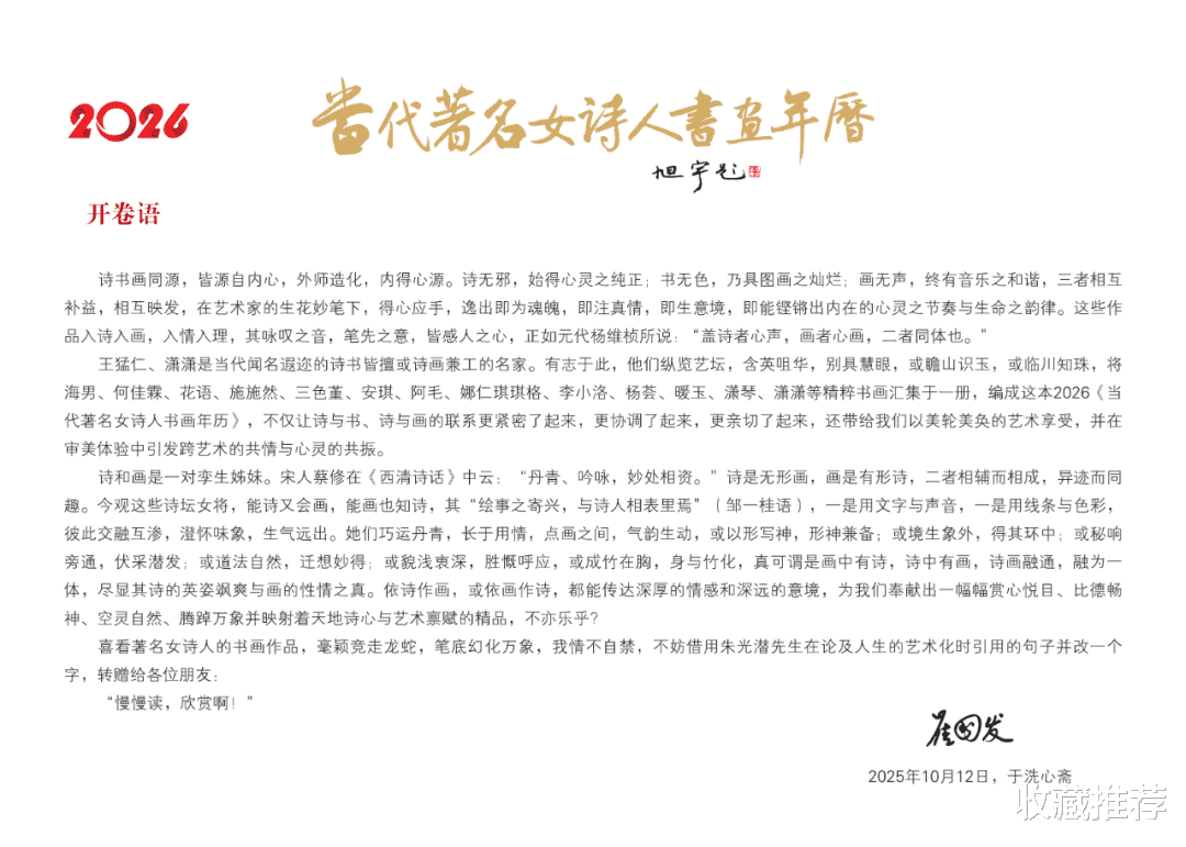 诗心清澄 墨韵流芳——2026《当代著名诗人书画年历》《当代著名女诗人书画年历》公开亮相啦!!!