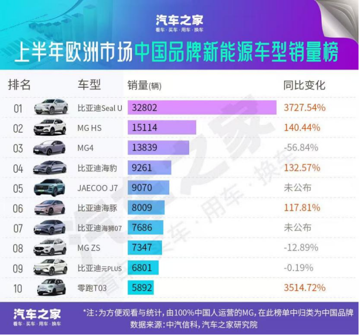 中国汽车出海加速,比亚迪成为中国新能源上半年欧洲销量榜首