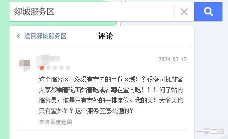 有网友反映,在今年2月份,就有网友在地图平台评论区留言:这个服务区竟然没有室内的用餐区域,很多司机游客端着泡面站着吃或者蹲在室内吃。