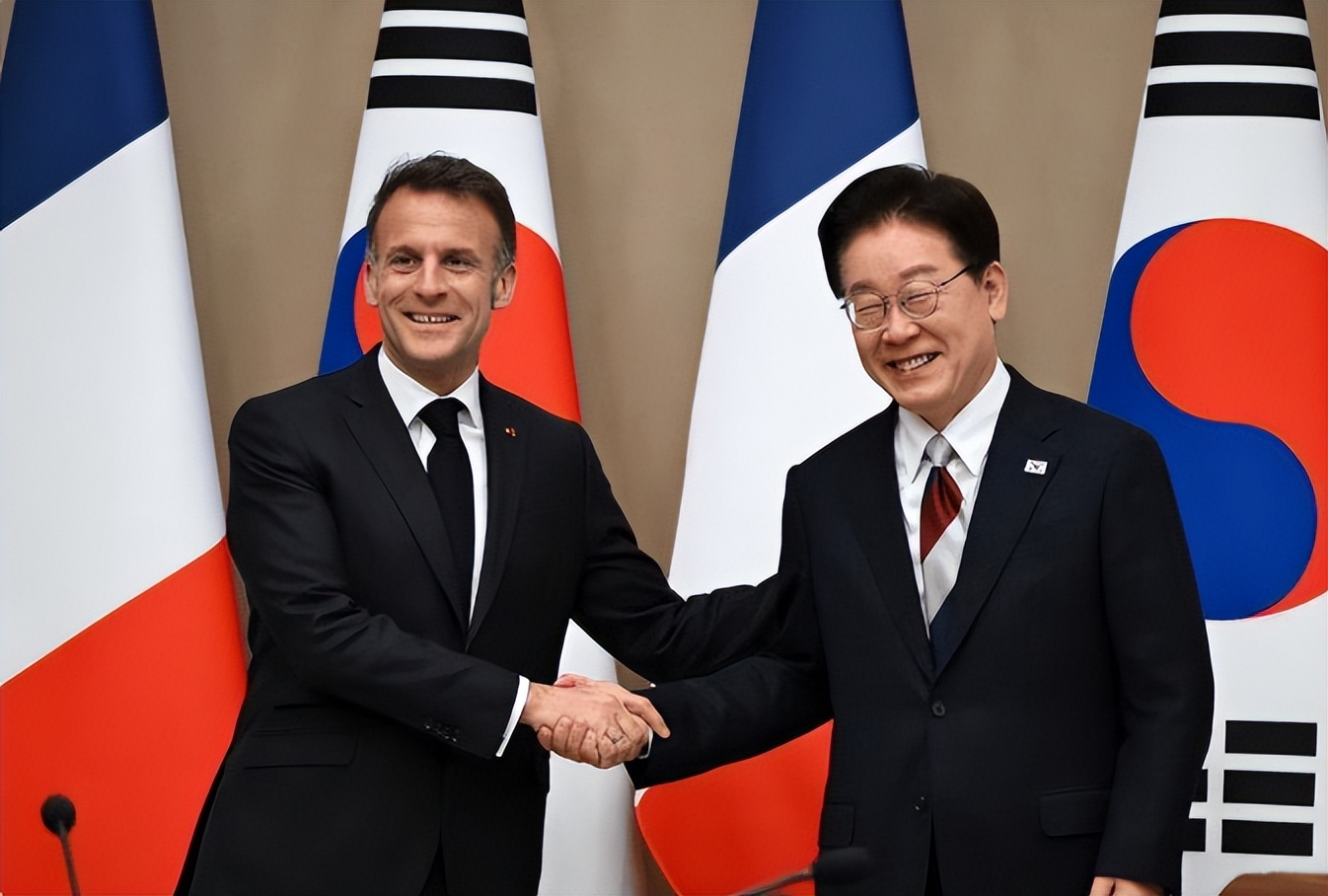 马克龙这么做,原因很现实。韩国和中国经贸往来密切,韩国总统李在明 1 月刚访华,坚持一个中国原则,不愿意跟着法国反华。马克龙知道在韩国搞反华行不通,就赶紧换怀柔策略。