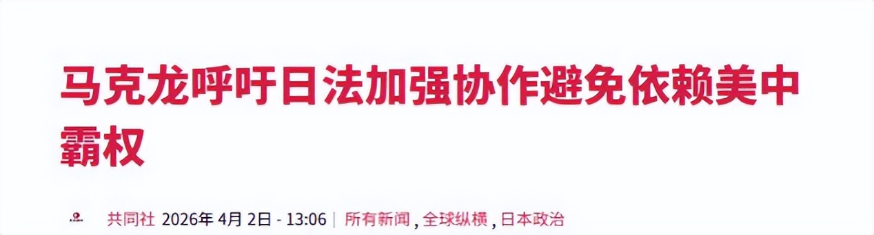 3 月 31 日,马克龙带着法国国防部长、外交部长和两百多家企业代表抵达日本,4 月 1 日就和日本首相高市早苗签下了一份明显针对中国的联合声明。这份声明内容很直接,每一条都冲着中国的核心利益来。首先是公然插手台海问题,这是法国第一次在双边文件里明确提台海和平稳定,反对单方面武力改变现状,完全照搬日本的说法,直接干涉中国内政,突破了法国以往的外交底线。