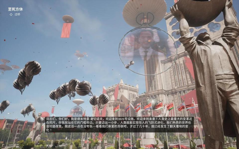 这款由俄罗斯游戏开发商Mundfish制作的第一人称射击+角色扮演游戏,可以说满足了我们对于曾经那个老大哥的想象。游戏以平行时空 1955 年的苏联为背景,使用斯大林式宏伟建筑搭配复古电子管科技,还有巨型雕塑与漂浮都市,可以说是将苏式美学和原子朋克完美结合。