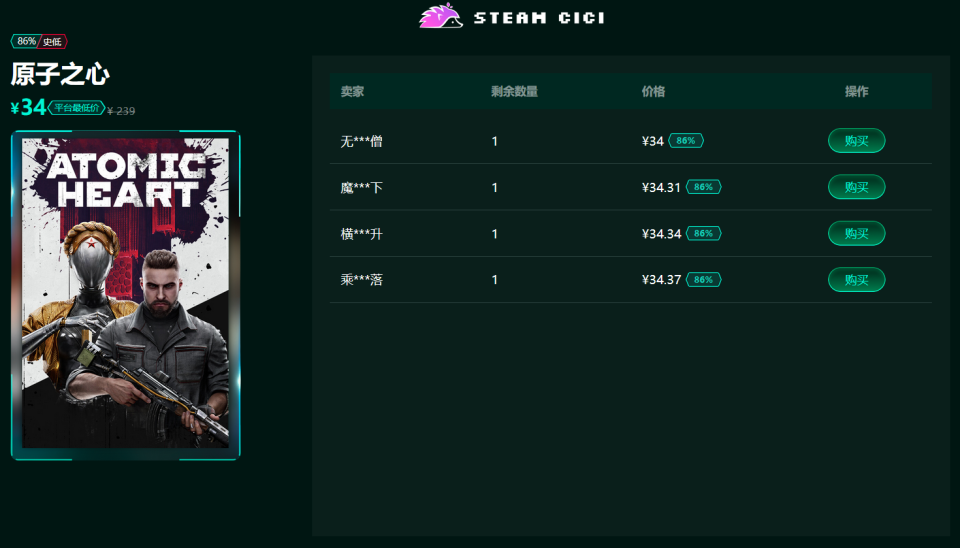 这边推荐玩家可以使用steamcici这个平台进行购买,作为目前非常受steam玩家欢迎的游戏平台,在上面我们可以找到各式各样的steam游戏资源,并且价格相比steam商店会香很多,而且上面的游戏也都是真入库,安全性也比较有保障。