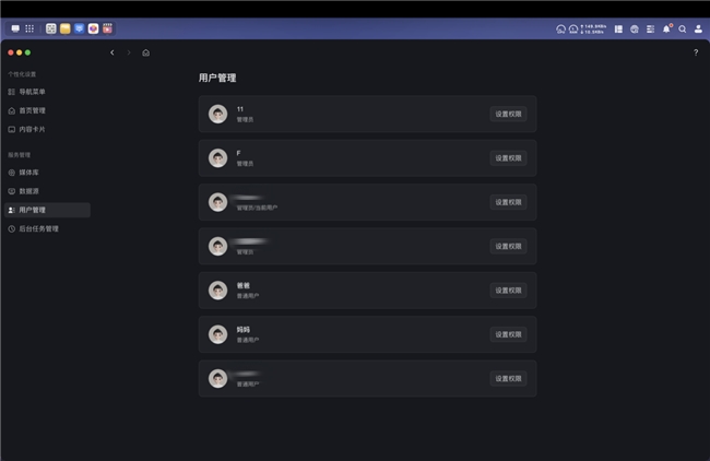 另外在画质兼容方面,影视中心功能是支持杜比视界、HDR、蓝光、4K等格式大片的,也可以创建多个影视库,并设置哪些用户能看到哪些库,可以说是方便实现资源共享的同时也保护着隐私。全面兼容手机、平板、电脑、电视等多终端进行播放,观影进度多平台无缝衔接,相当nice。