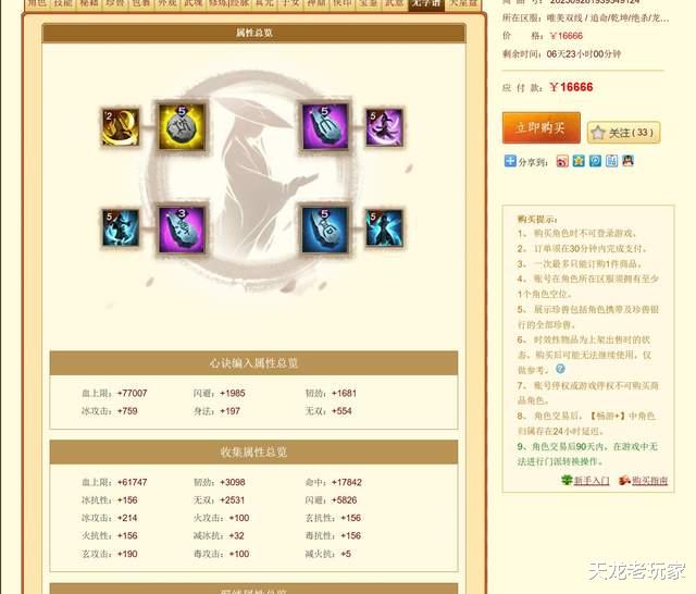今天给大家介绍的,是来自【绝杀】服务器的55万评分武当,33个关注,一路疯狂降价,从18333降价到16666,依然还未能成交。