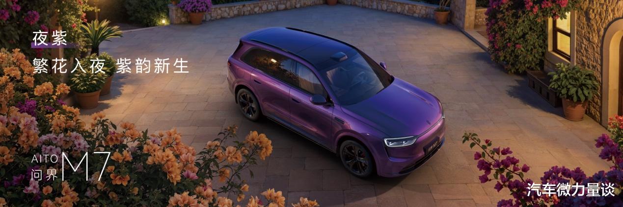 问界 M7新增“夜紫”车色,灵感源自5000光年外的银河星系,通过铝粉与红紫珠光漆的精妙配比,呈现出星空紫色的纯粹与饱和质感,神秘而深邃。此次焕新,问界 M7同步推出21英寸星芒轮毂选配。精密星芒造型呼应夜紫车色,显著提升车辆侧面豪华感与精致度,让每一次出场都气场十足。