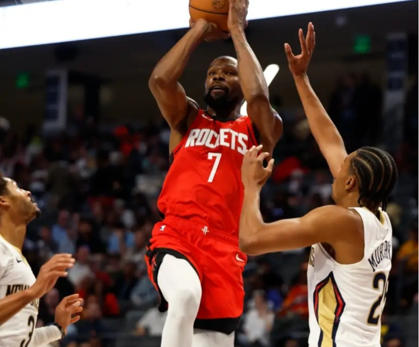 开局杜兰特就身先士卒在家进攻端火力全开,整体实力占优的火箭也在攻防两端实现了全面的压制,上半场他们便以67:45取得了20+的比分领先优势,比赛似乎往火箭预期的方向发展,力争三节打卡下班,让主力球员获得更多的休息时间全力备战下一场对阵掘金的复仇之战。
