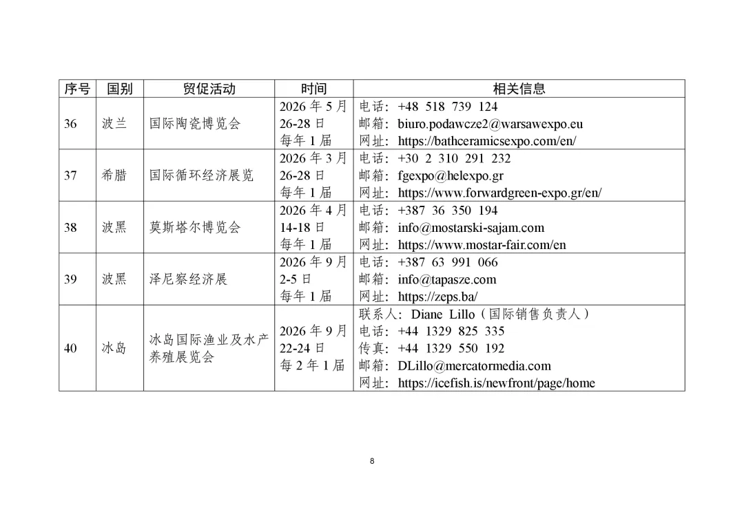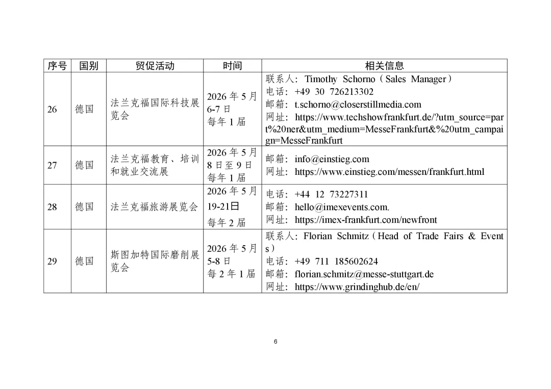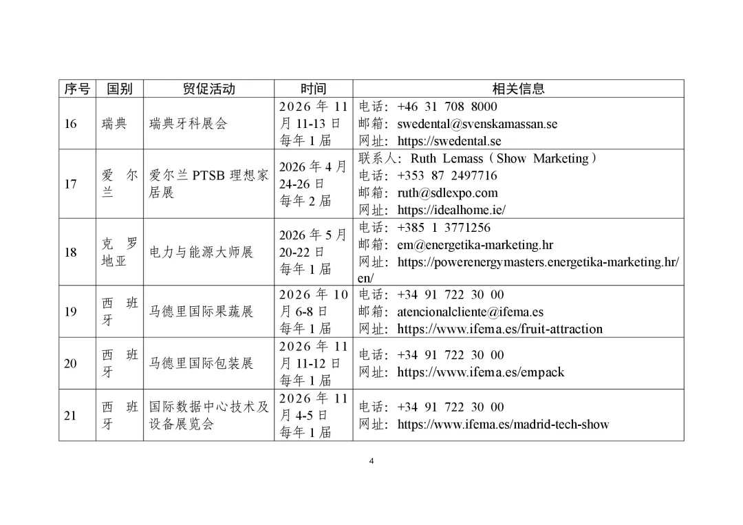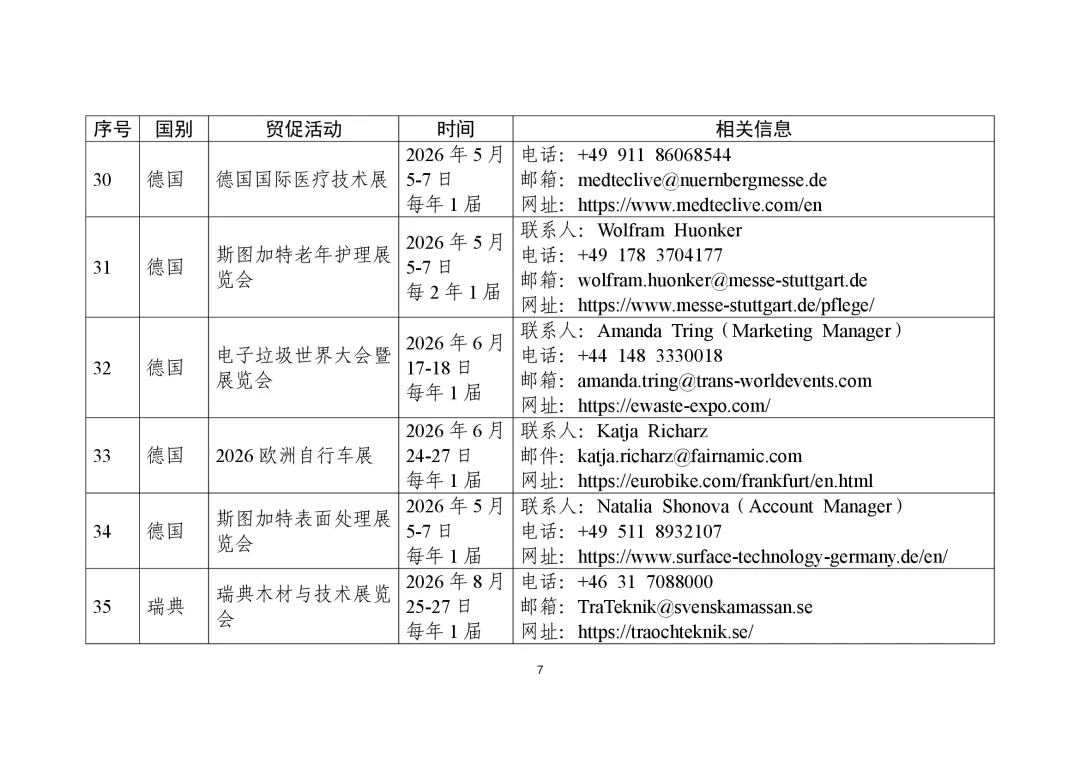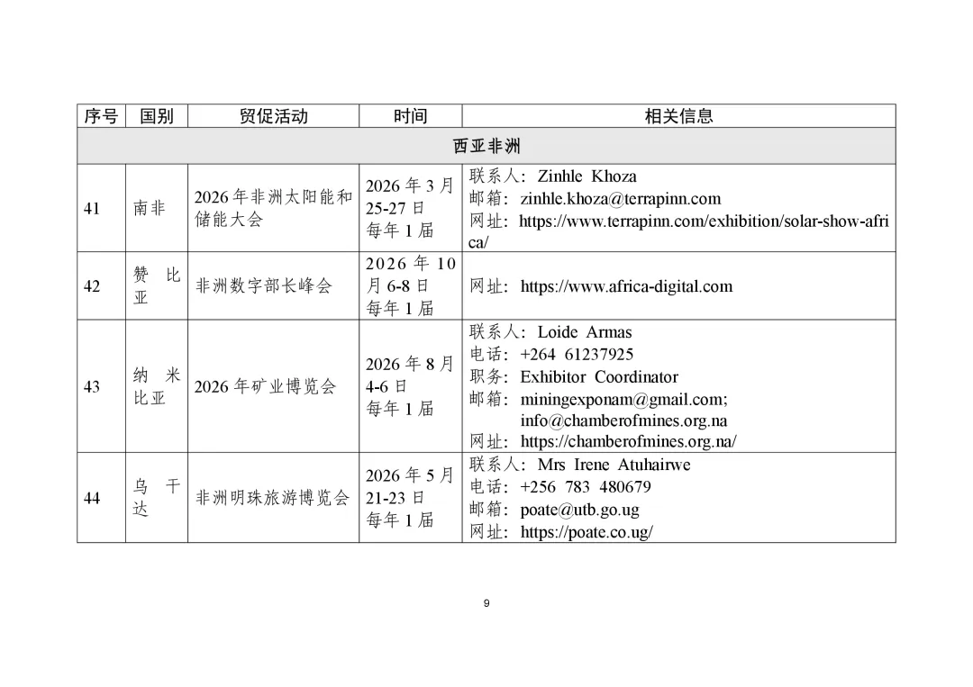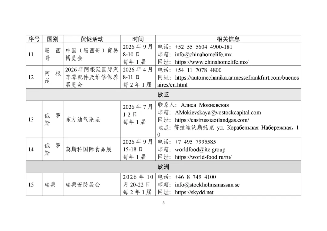 商务部高度重视贸易促进工作,组织各驻外使领馆经商机构定期收集、整理驻在国重点行业协会、贸易促进活动、企业供求信息等,汇总形成《外贸促进信息》,此前已发布九批。近期,商务部又梳理形成新一批《外贸促进信息》,编汇形成第32期《重点贸易促进活动》、第33期《市场供需信息》,并补充更新了《境外商协会手册》,供广大外贸企业和各级商务主管部门、各商协会参考。