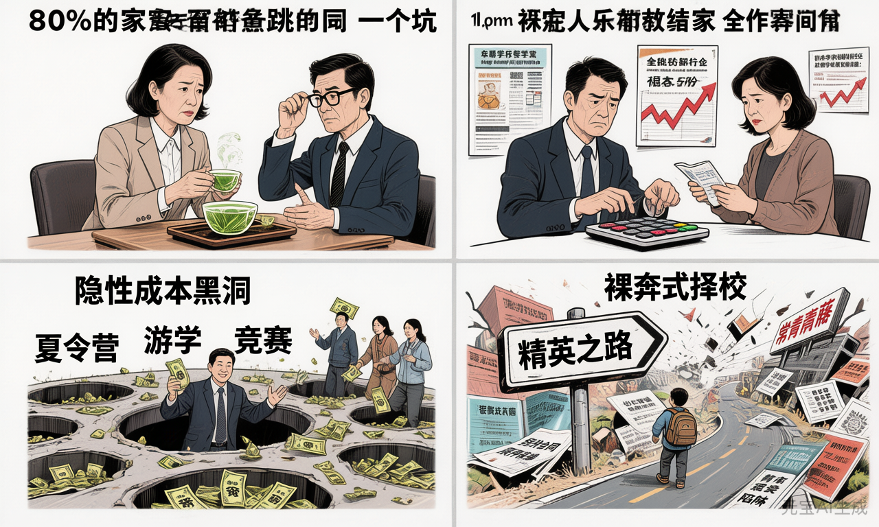 五、 孤注一掷,把家庭变成“教育独角兽”这是最令人感慨的。一个家庭,将所有积蓄、所有现金流、所有未来期望,都押在了一条教育路径上。这意味着这个家庭失去了应对危机的所有弹性,没有余钱改善生活、投资健康,更没有能力抓住教育以外的任何发展机会。整个家庭的希望全系于一个孩子的学业表现,脆弱得不堪一击。