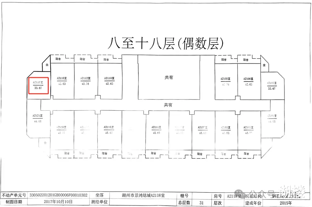 景鸿铭城A2118室为边套房源,位于18层(总高31层),建成时间为2015年,房产证登记时间为2017年10月。