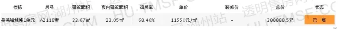 需要指出的是,该套房源当初新房备案价格约38.9万元,备案单价为11550元/m²。