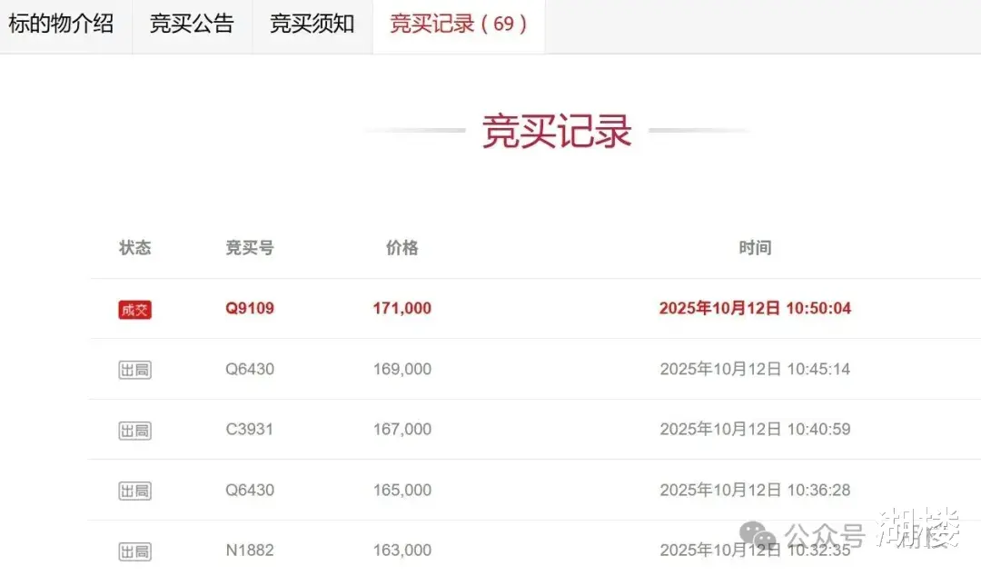 这一房源共有13人报名参与,最终历经69轮竞价后成交。