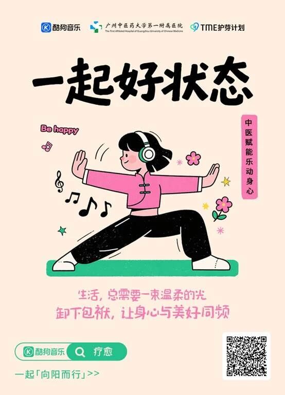 多方协同发力,强化专业保障作为腾讯音乐娱乐集团“护芽计划”的重要组成部分,“一起好状态”企划由酷狗音乐运营团队负责内容策划与平台落地,开设专题入口,以“音乐 + 运动互动” 形式降低健康养护门槛,广中医一院全程提供专业支持,从动作设计的科学性到健康知识科普,确保内容专业可靠,覆盖青少年成长与中青年身心平衡需求。