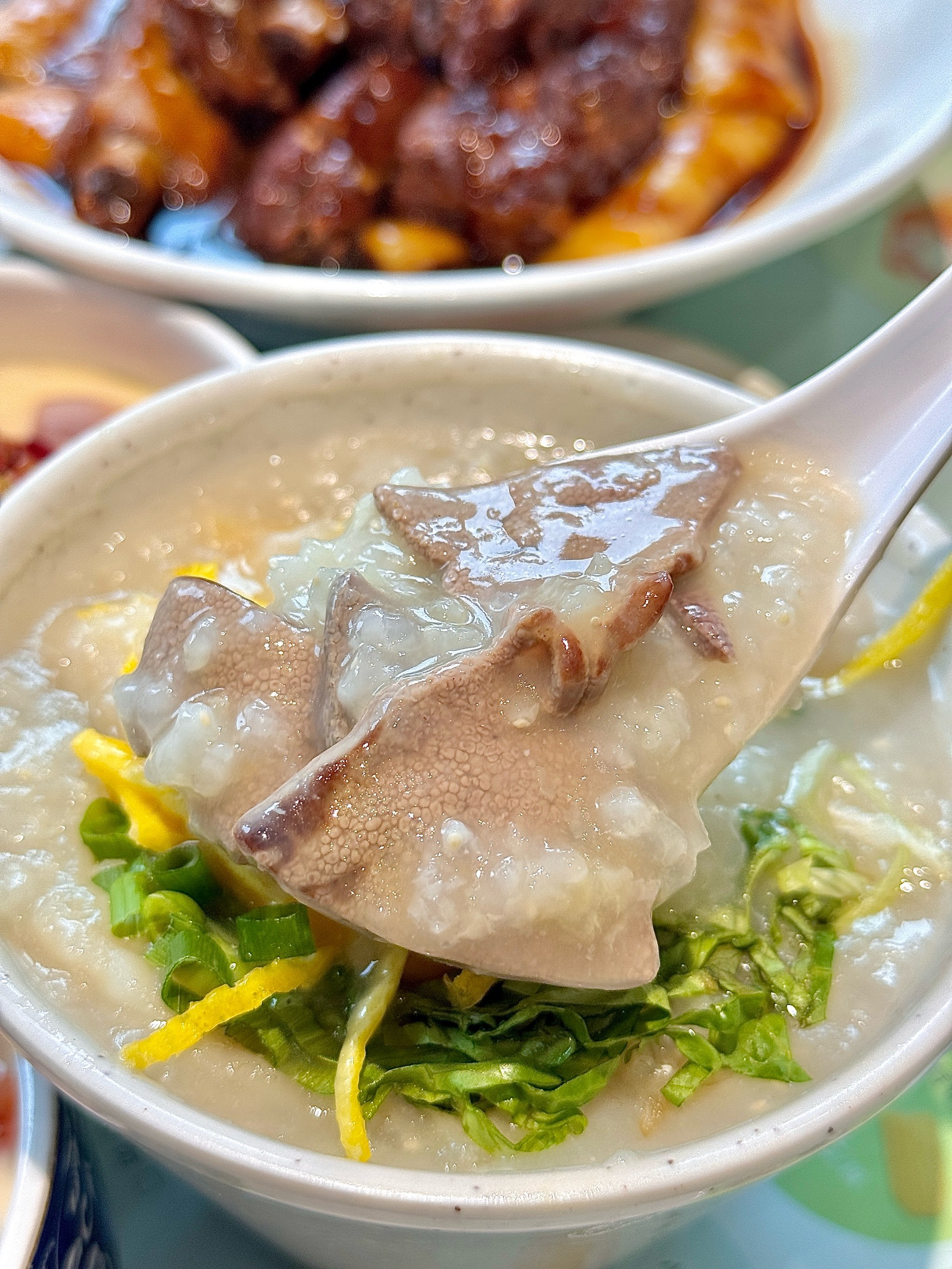 冲入滚烫鸡鸭骨粥,撒芫荽、紫苏,成“穷人富味”的街头传奇。