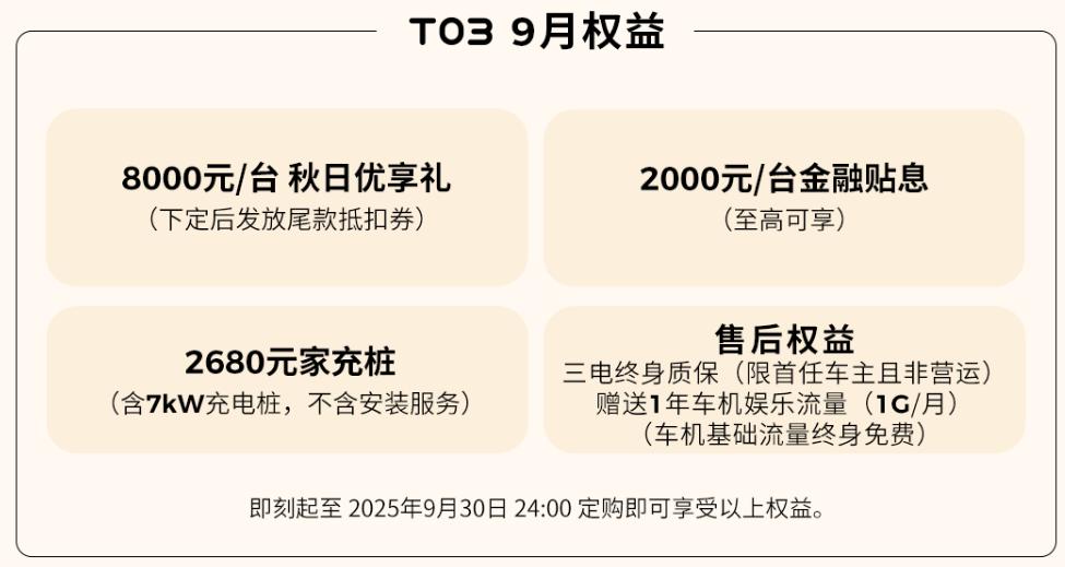 我们先来看下零跑T03,该车相较于2024款,在车型上做了一些精简,只有310舒享版和403舒享版两款车型,售价分别为5.99万元和6.99万元。