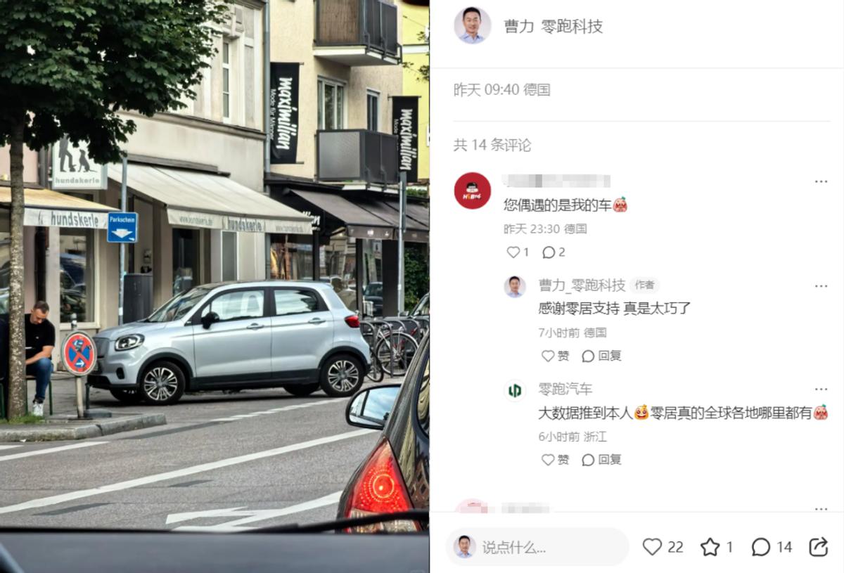 零跑科技高级副总裁 曹力去德国出差,随手就能拍到停在马路边上的T03,肉眼可见的保有量!