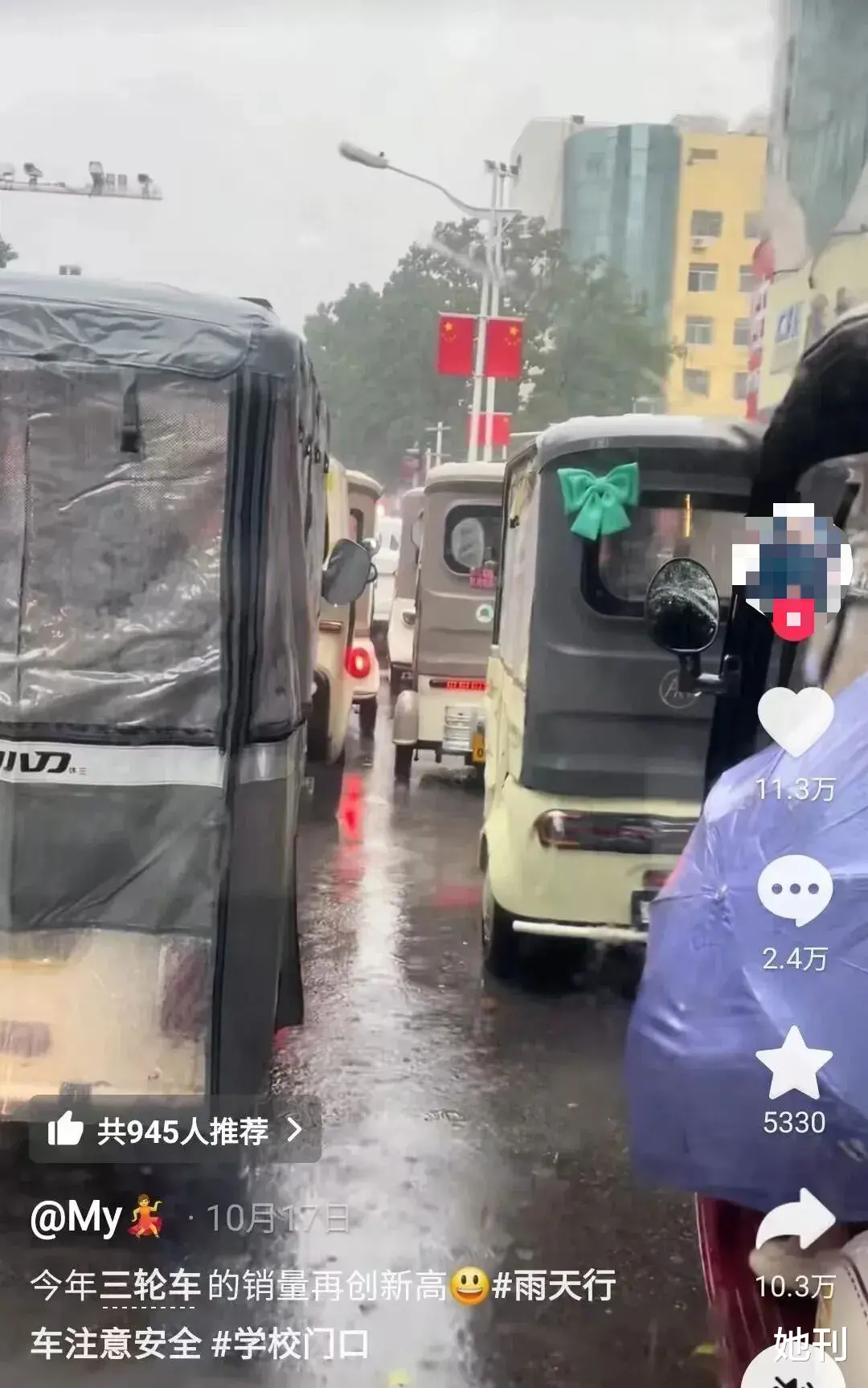 连日的雨水,使得骑电动车上下班的打工人和接送孩子的家长都叫苦不迭,也让他们最终和电动三轮车,握手言和。
