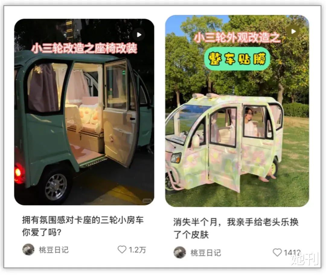 那些停在路边,外表相似的电动三轮车,拉开车门后很可能风格迥异,代表了不同女性对于理想空间的向往。