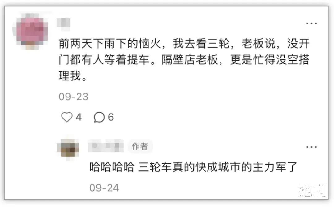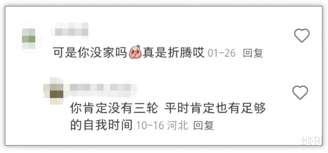 有人不理解宝妈们为什么不在家里舒服躺着,非要在狭小的电动三轮车里憋屈;有人讽刺她们的伪精致,“被撞一下能原地开一家两元店”。