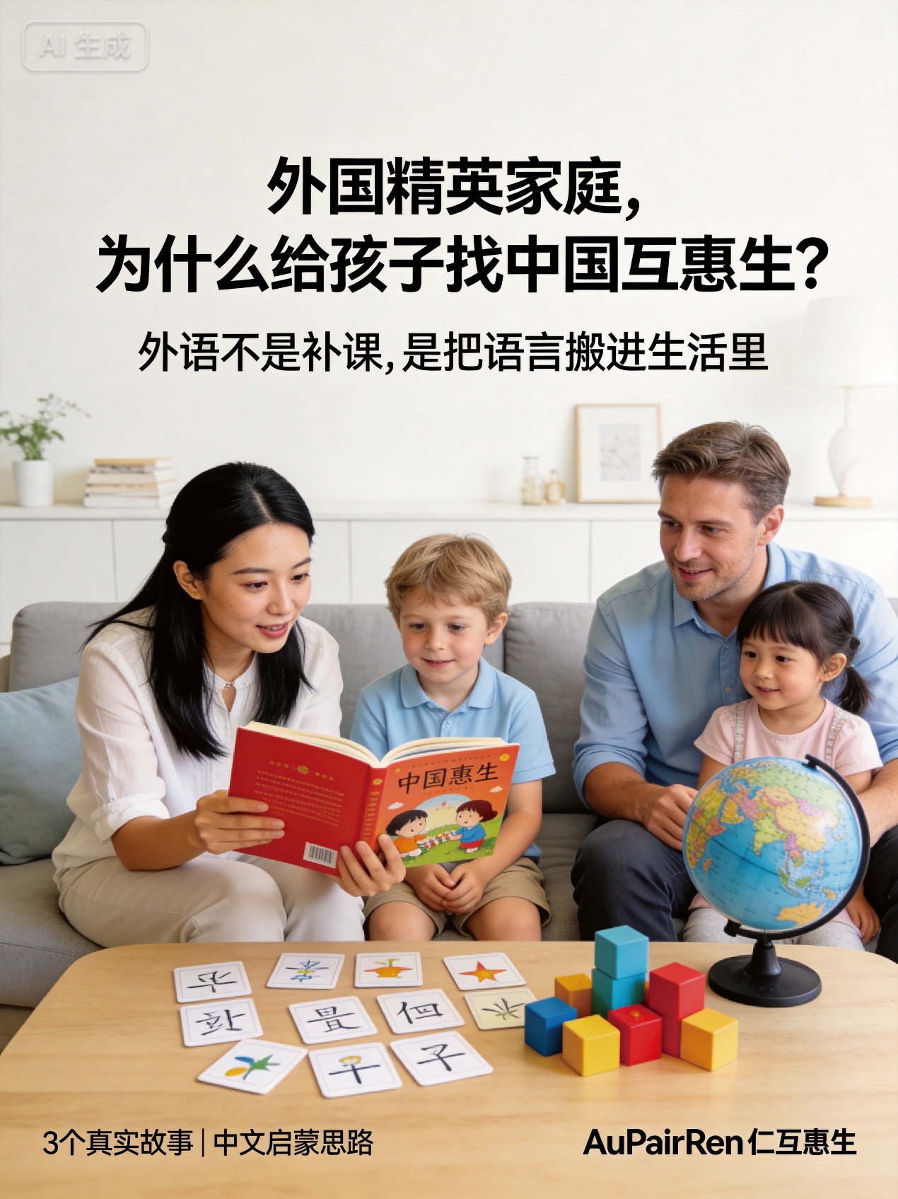 以前很多人以为,孩子学外语要等上学、报班、背单词。但不少国际视野很强的美国家庭,早就用了另一套方法:直接把语言环境搬进家里——请一位会讲普通话的中国互惠生,让孩子在吃饭、游戏、讲故事、出门、睡前这些日常场景里,自然接触中文。🌍📚